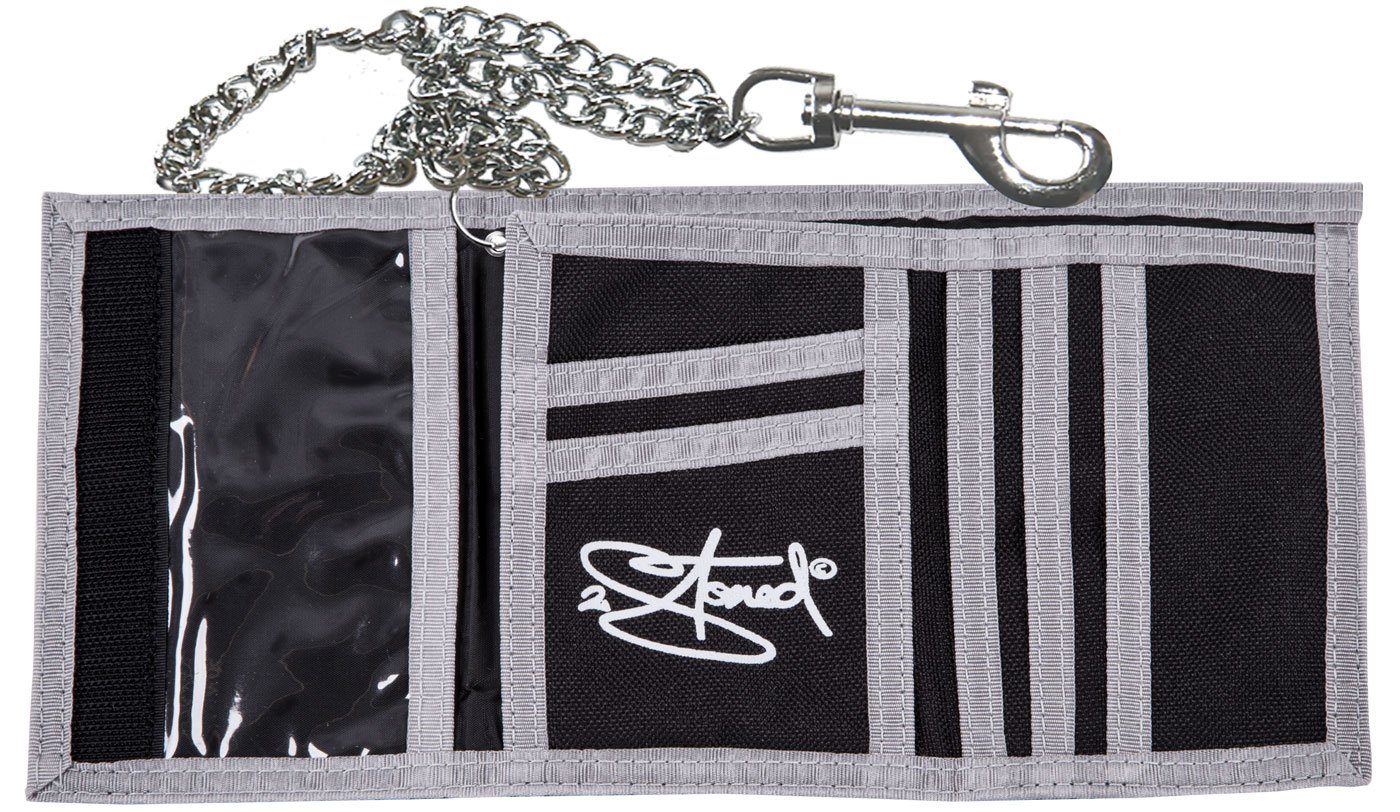 The 2Stoned Chain Wallet Speed with Patch Logo is a stylish and secure solution for adults and children. Featuring a 56cm chrome-plated chain with a sturdy carabiner, this wallet combines classic street style with practical functionality. Constructed from durable Cordura-style fabric (polyester base), it boasts an external zippered pocket, multiple slots for ID or photos, and a convenient Velcro closure. Keep your valuables safe and organized with this versatile accessory, perfect for everyday use.