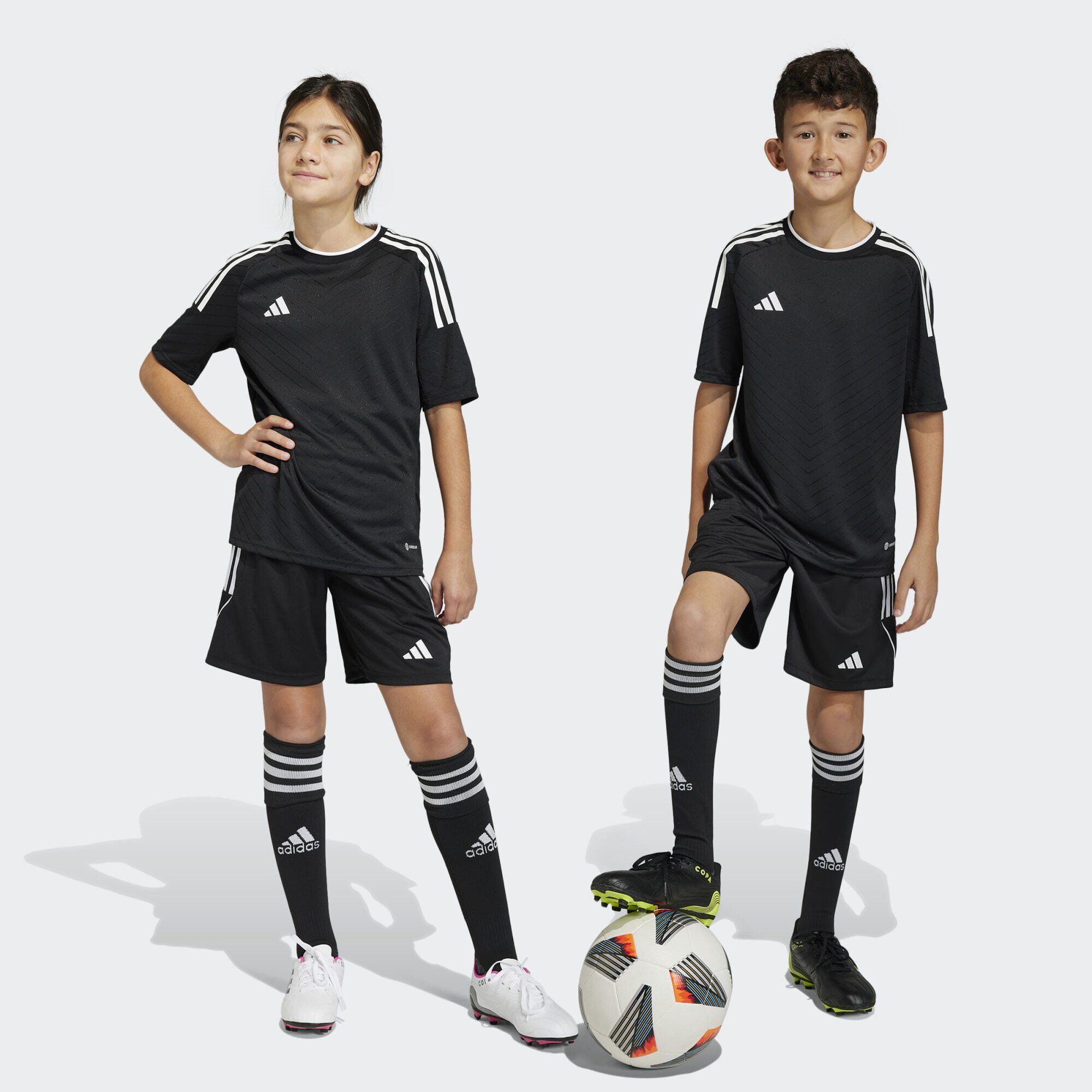 Experience peak performance with the adidas Performance Tiro 23 League Short for kids. Designed for dynamic movement and comfort, these shorts are crafted from 100% recycled polyester, contributing to a sustainable future. Featuring an adjustable elastic waistband with an internal drawcord, they ensure a secure and personalized fit. adidas’ AEROREADY technology wicks away moisture, keeping young athletes cool and dry during intense activity. Distinct side stripes add a classic sporty look, complemented by a subtle embroidered logo. These Tiro 23 League shorts are perfect for training, matches, and everyday play, offering both style and functionality. Let your kids conquer the field with confidence and comfort.