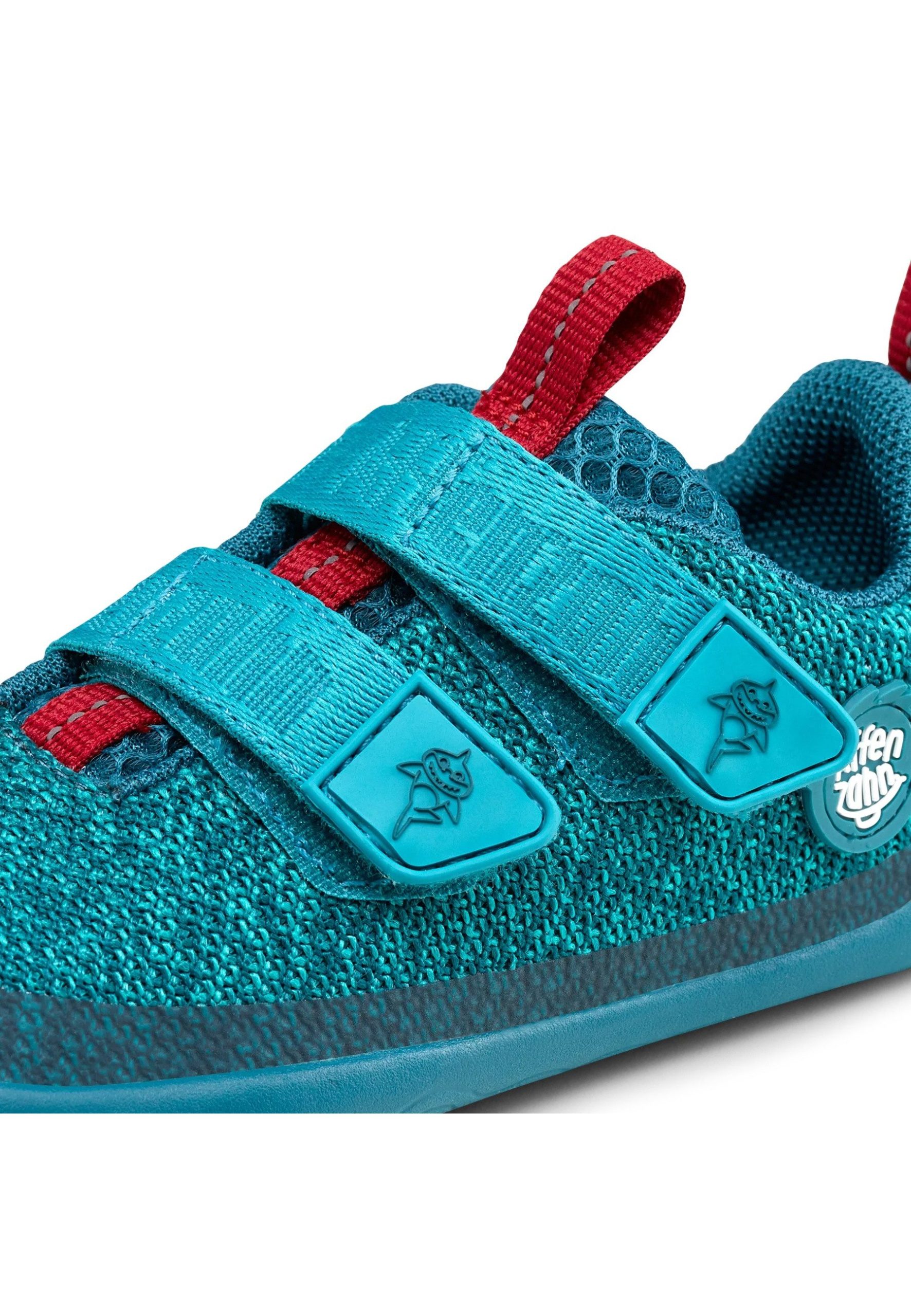 Affenzahn Knit Happy sneakers: Lightweight, flexible, vibrant, and eco-friendly barefoot shoes for summer adventures. Velcro closure, reflective details, and a focus on natural foot development.
