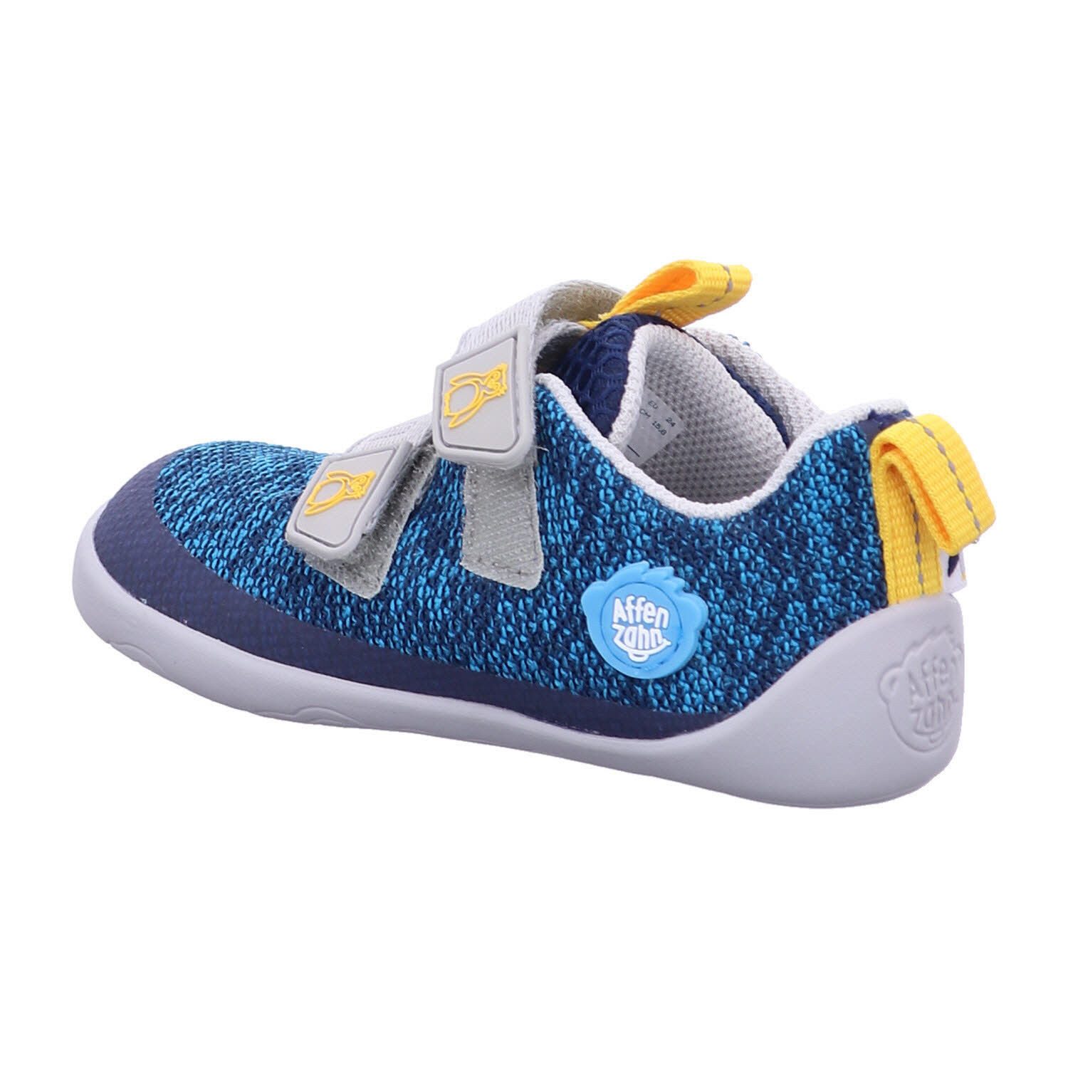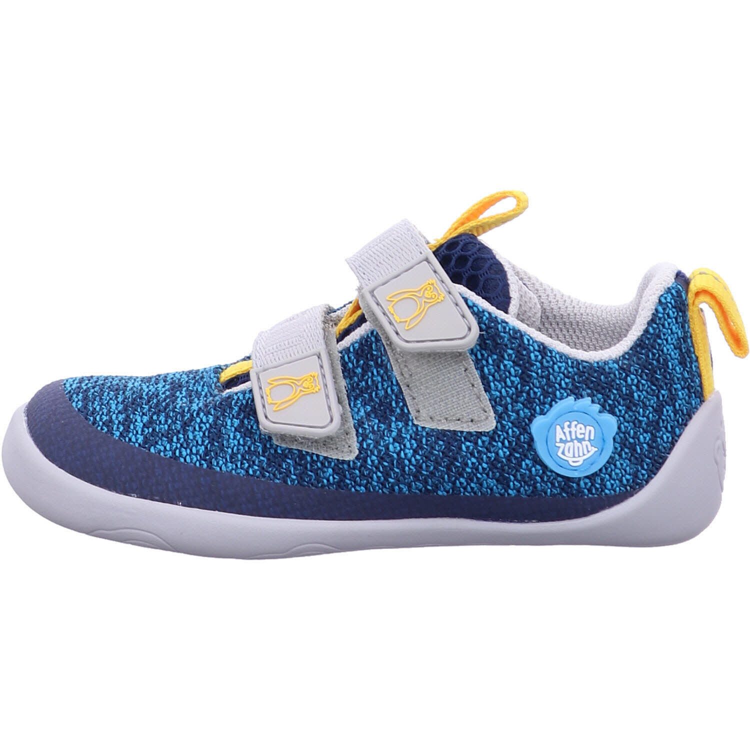 Affenzahn Knit Happy sneakers: Lightweight, flexible, vibrant, and eco-friendly barefoot shoes for summer adventures. Velcro closure, reflective details, and a focus on natural foot development.