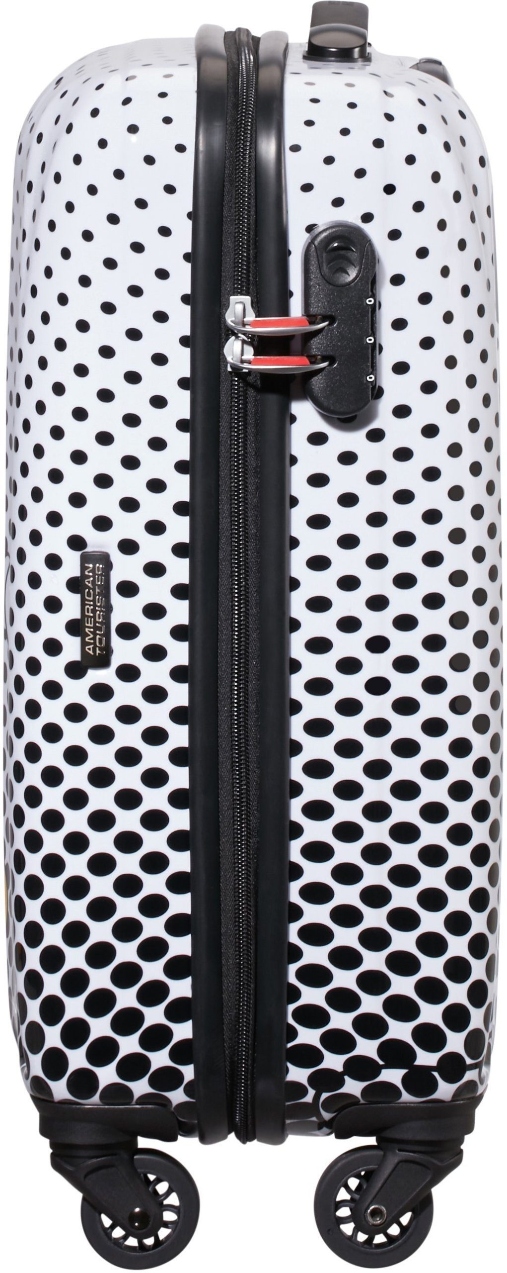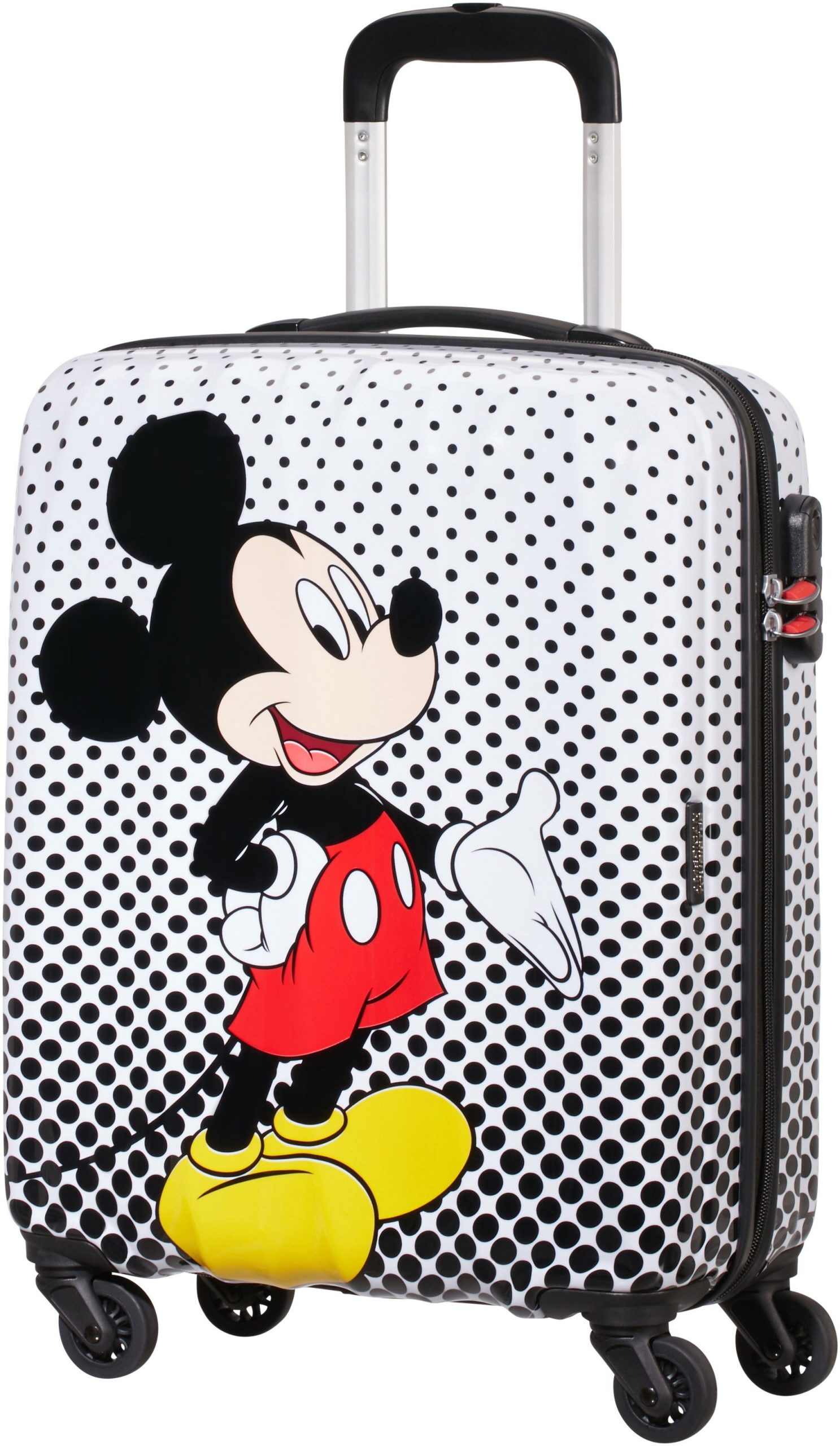- American Tourister Disney Legends 55cm Trolley: Vibrant Mickey Blue Dots design, durable hardshell, spacious interior, combination lock, 4-wheel maneuverability – perfect for kids‘ travel!