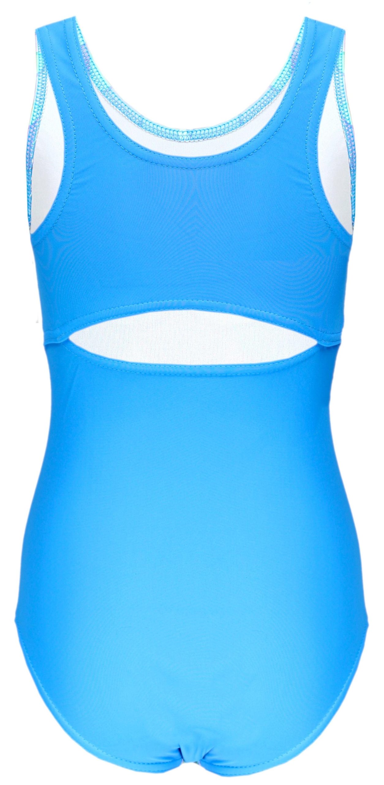 - Bequemer Mädchen Schwimmanzug mit Racerback und schönem Delphin Druck vorn