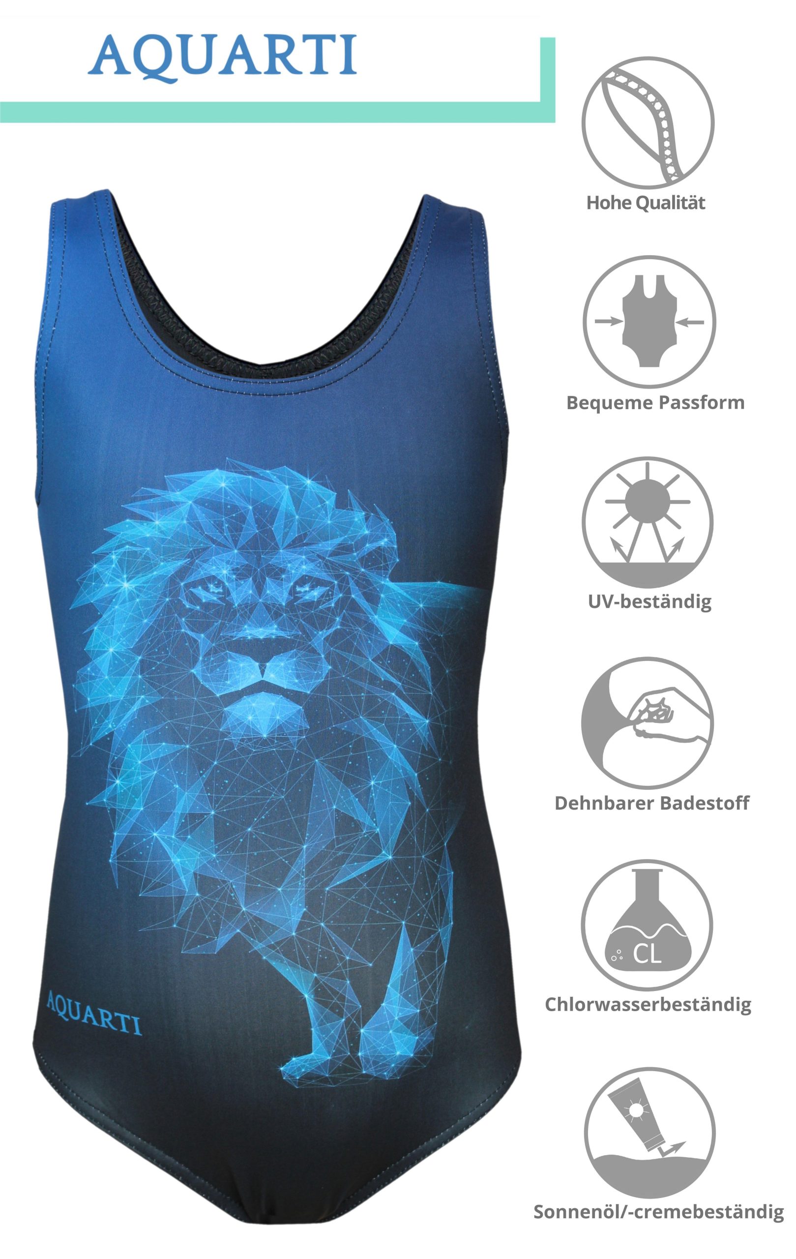 Dieser Aquarti Mädchen Sport Schwimmanzug mit Ringerrücken begeistert mit dem coolen Delfin-Print auf der Vorderseite und mit erstklassiger Verarbeitungsqualität. Dank der hochwertigen Materialmischung passt der Kinder Sportbadeanzug sich ausgezeichnet an den Körper an. Da der Badestoff schnelltrocknend, chlorbeständig und auch resistent gegen UV-Strahlen ist, eignet sich das Modell ideal für den Stranthurlaub, Schwimmbad und auch für den ersten Schwimmunterricht. Zudem sorgt die komfortable Passform für einen perfekten Sitz und eine uneingeschränkte Bewegungsfreiheit.