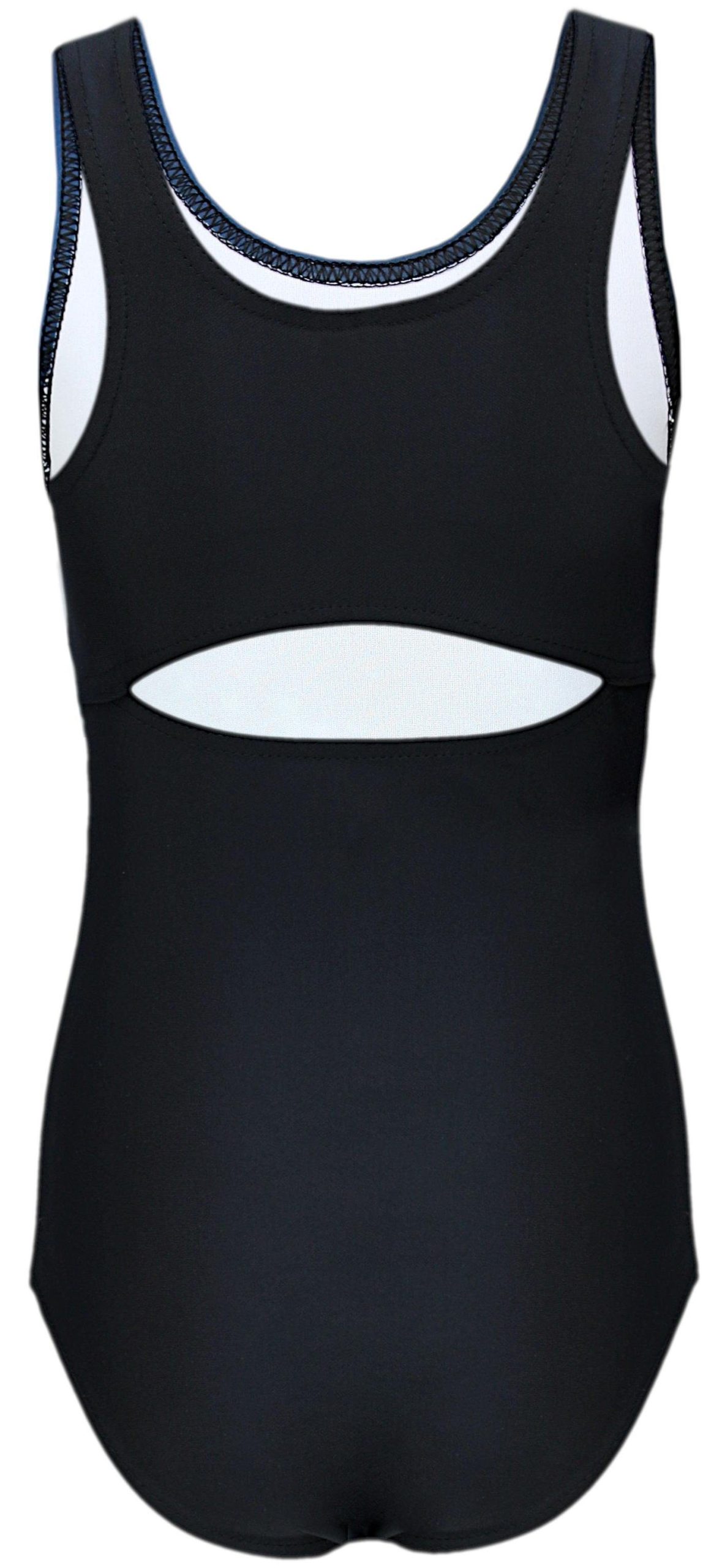 - Bequemer Mädchen Schwimmanzug mit Racerback und schönem Delphin Druck vorn