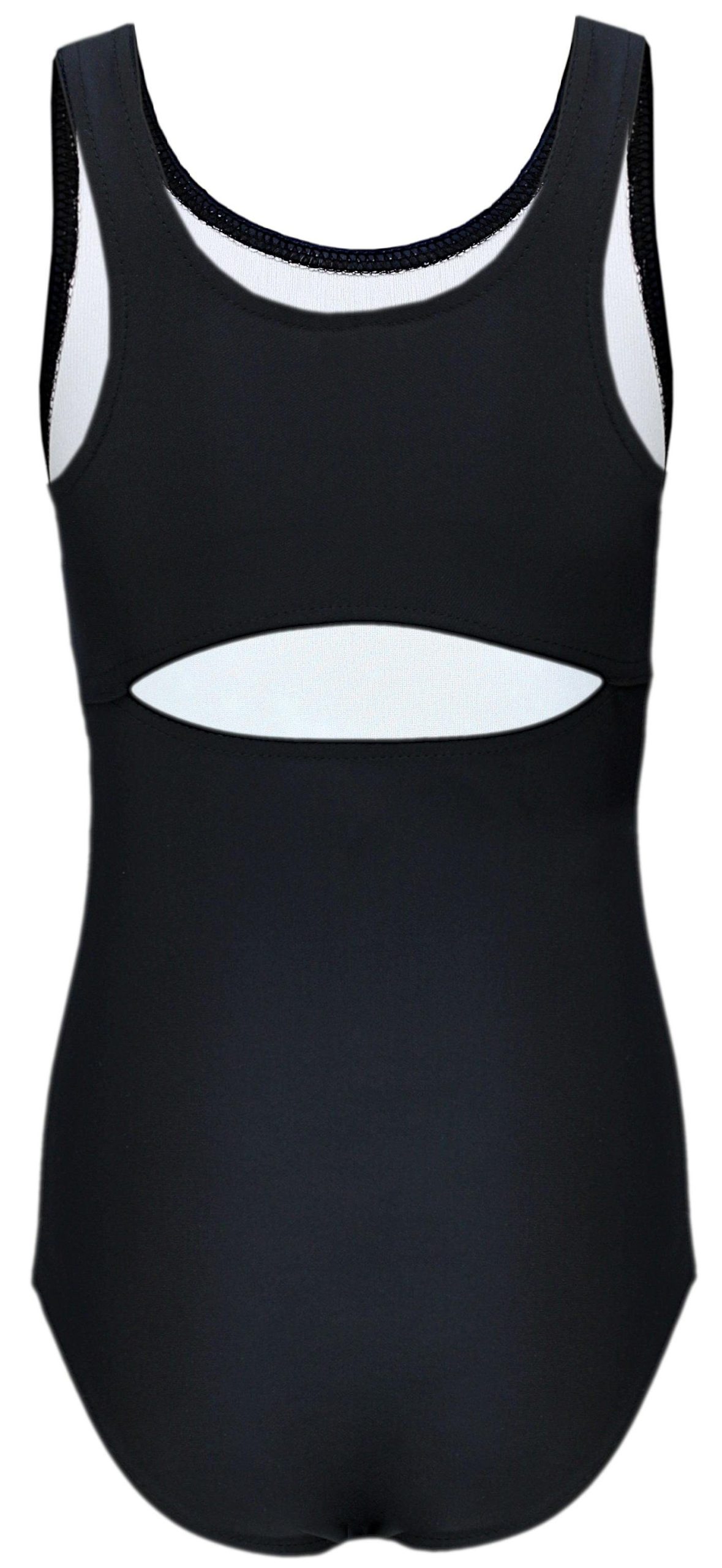 - Bequemer Mädchen Schwimmanzug mit Racerback und schönem Delphin Druck vorn