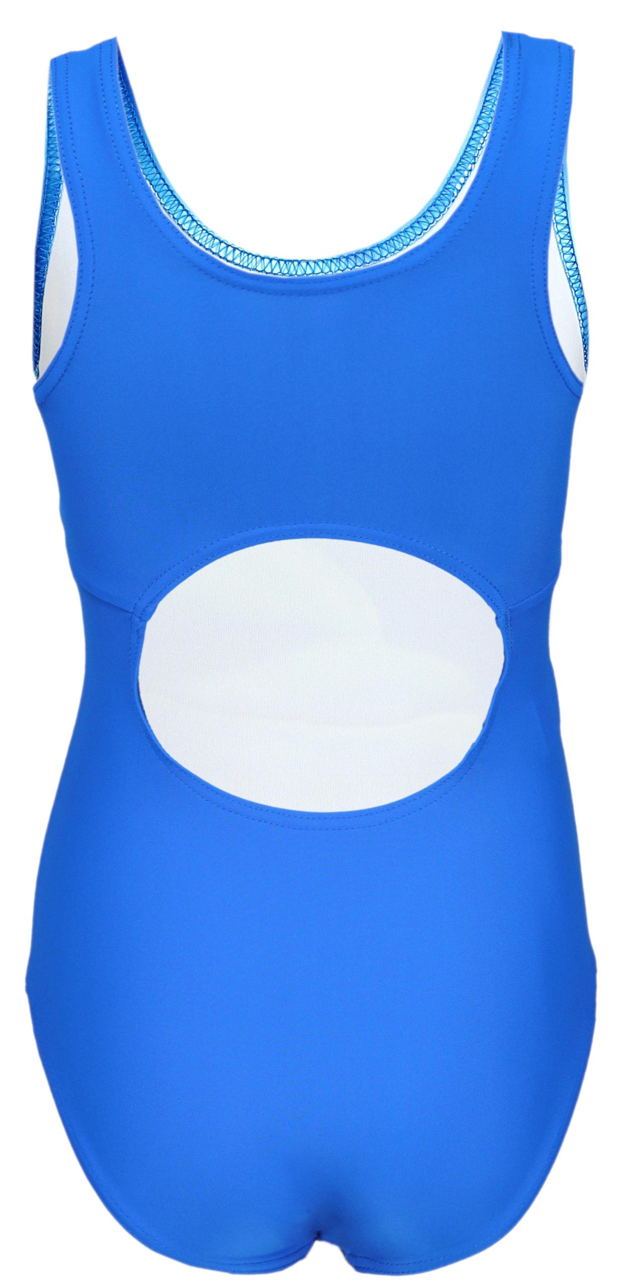 - Bequemer Mädchen Schwimmanzug mit Racerback und schönem Delphin Druck vorn