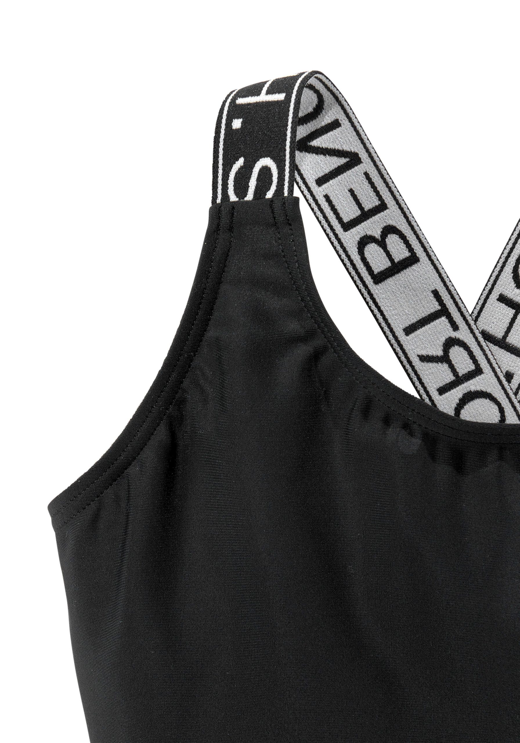Bahnen ziehen im Schwimmbad oder ein Sprung vom Sprungbrett: Mit diesem sportiven Badeanzug von Bench sitzt alles perfekt. Das Material hat einen hohen Elasthananteil und ist blickdicht gefüttert. Dazu kann der Einteiler noch mit modischen Trägern punkten. Sie sind im Rücken gekreuzt und mit dem Markenschriftzug bedruckt. Die klassische Form macht den Badeanzug von Bench zu einem „All-time-Favorit“ im Kleiderschrank eines jeden Mädchens.