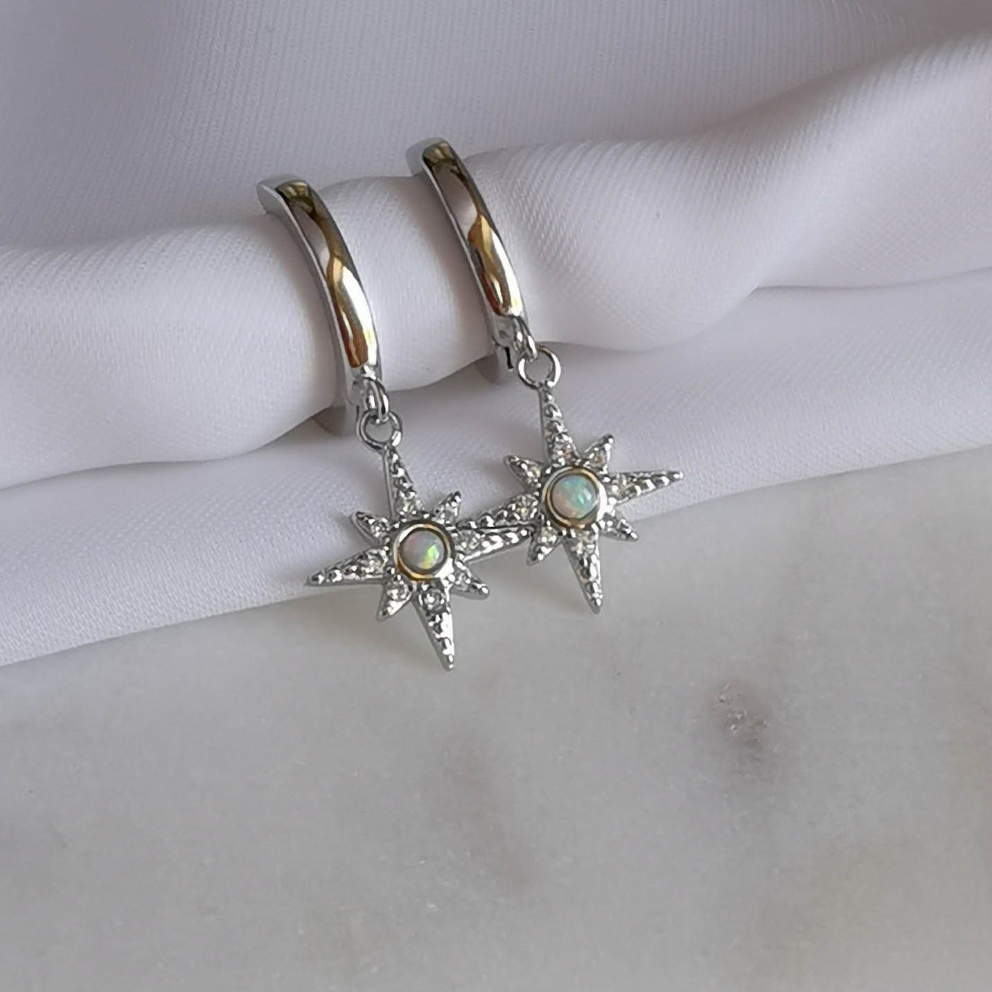 Styling Tip: Besonders gut passen unsere Ohrringe Adelaide zu unseren Ohrstecfern Faro, in welchen auch Opale verarbeitet sind.