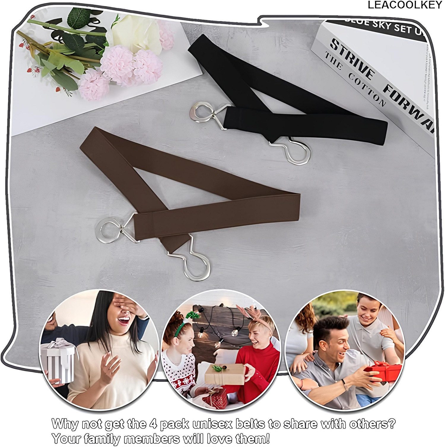 COOL-i 4-Pack Elastic Stretch Belts: Buckle-free comfort & style for men & women. Adjustable, invisible, and perfect for any outfit.