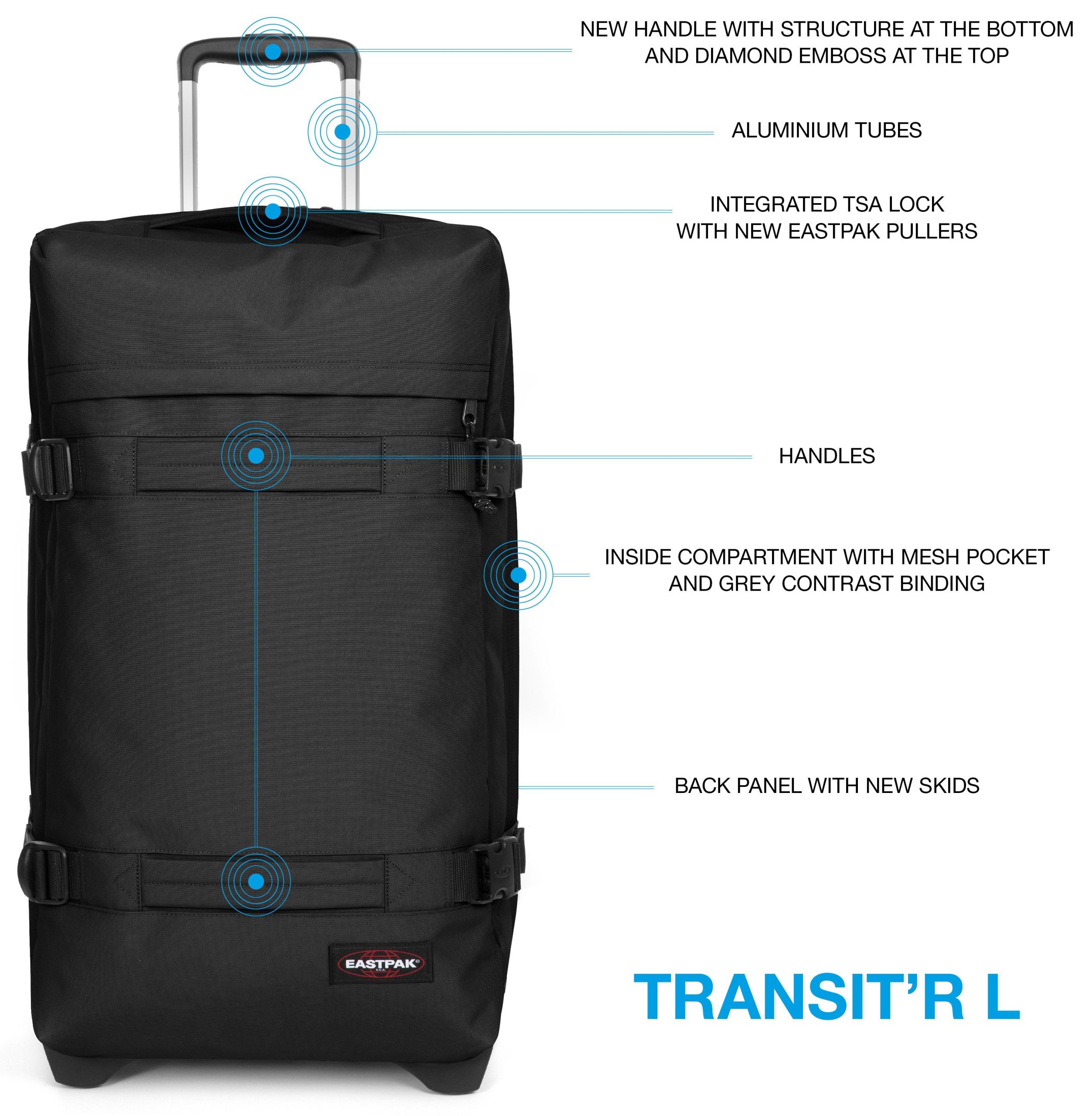 Experience the perfect blend of durability and style with the Eastpak Transit’r L Wheeled Duffel. This spacious and reliable travel companion is designed for modern adventurers. Featuring a robust construction with reinforced seams and heavy-duty zippers, the Transit’r L offers ample space for all your essentials. Its integrated, TSA-approved lock provides peace of mind while traveling, safeguarding your belongings. The durable wheels and retractable handle ensure effortless maneuverability through airports and city streets. Crafted with the signature Eastpak quality, this 42L wheeled duffel is more than just luggage – it’s a statement. Eastpak’s commitment to quality ensures this duffel will be your trusted travel partner for years to come. Ideal as carry-on luggage, this versatile duffel combines practicality with iconic Eastpak design.