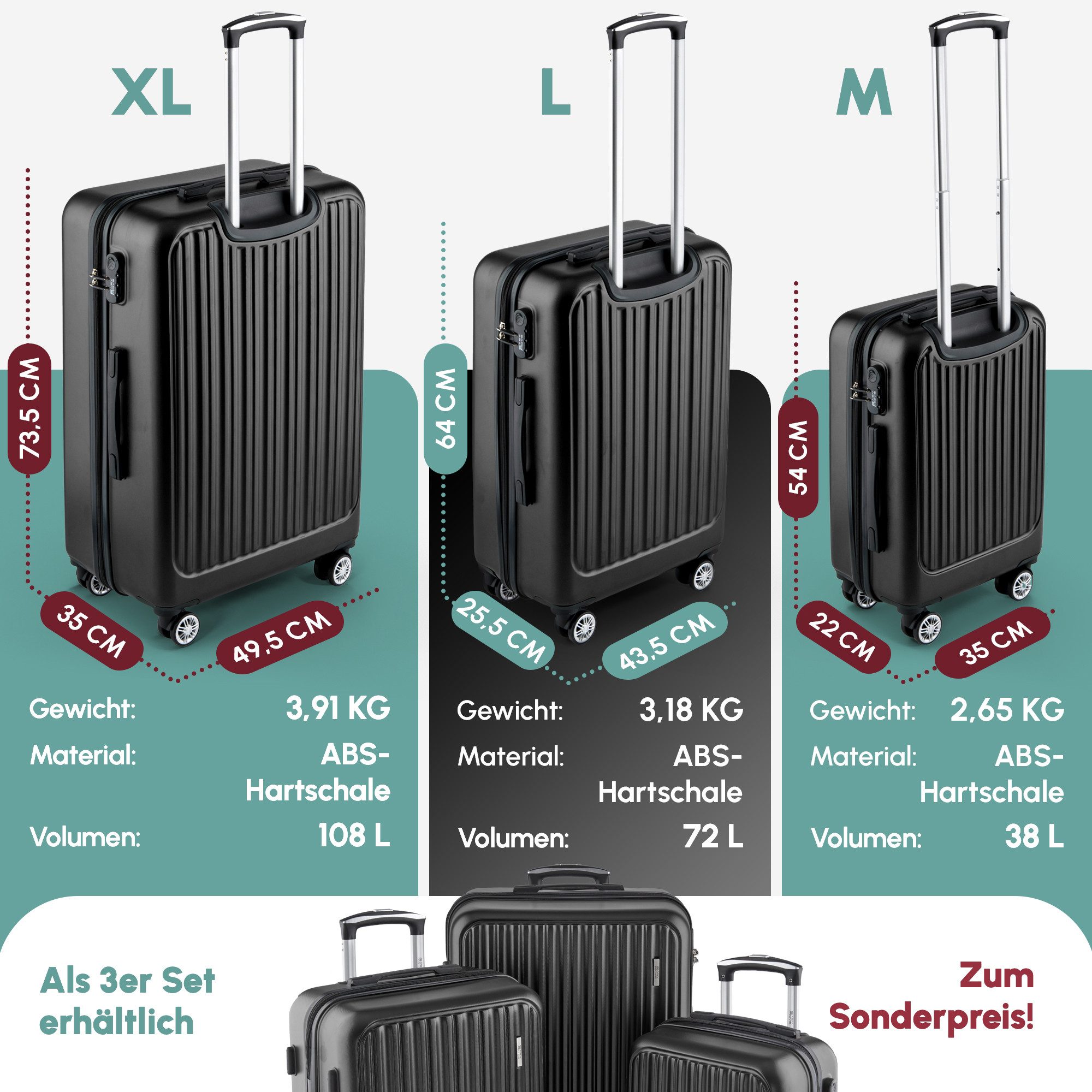 - 100% ABS-Hartschale