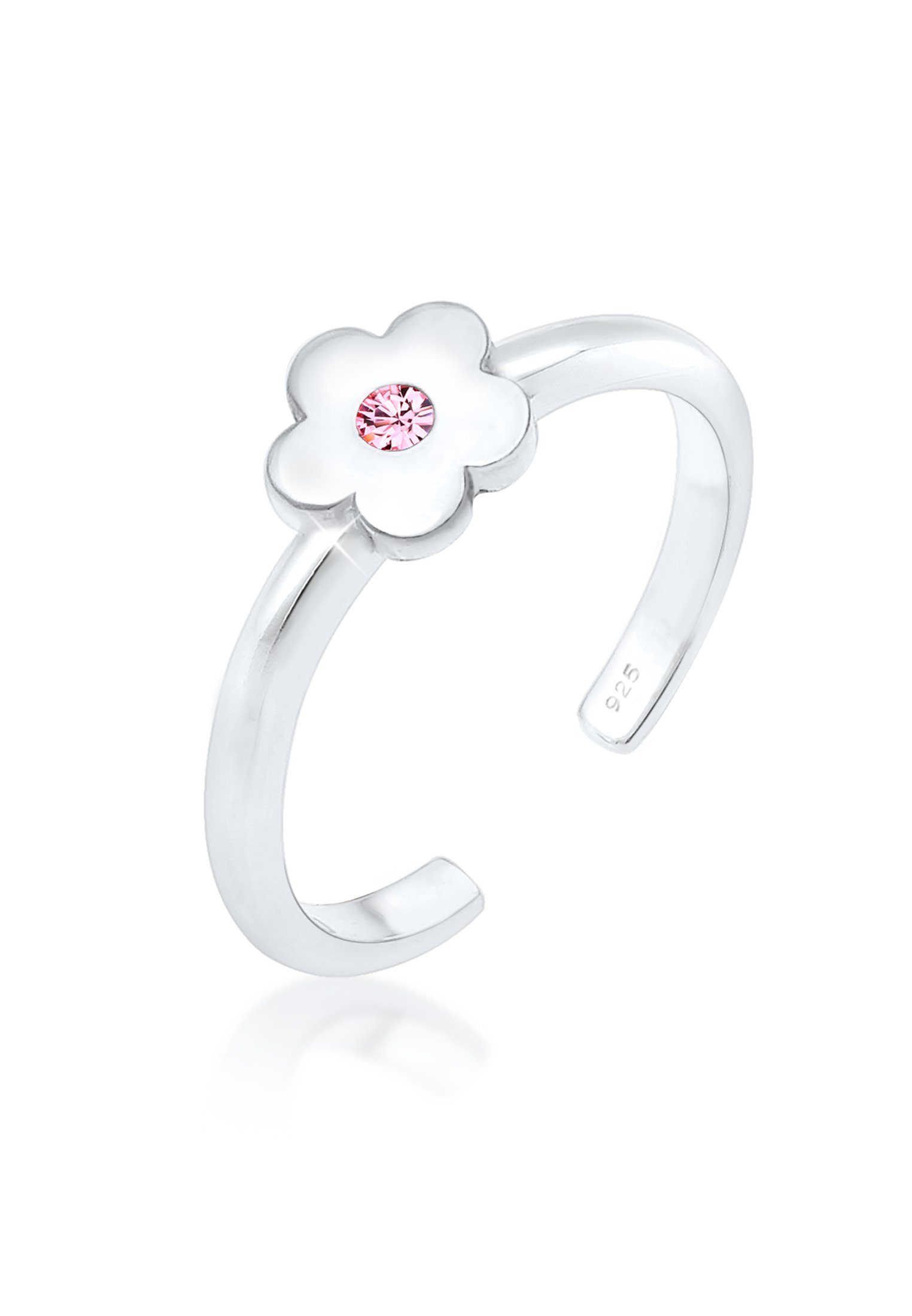 Delicate silver flower ring from Elli, featuring a sparkling crystal detail. A perfect gift for a little princess.