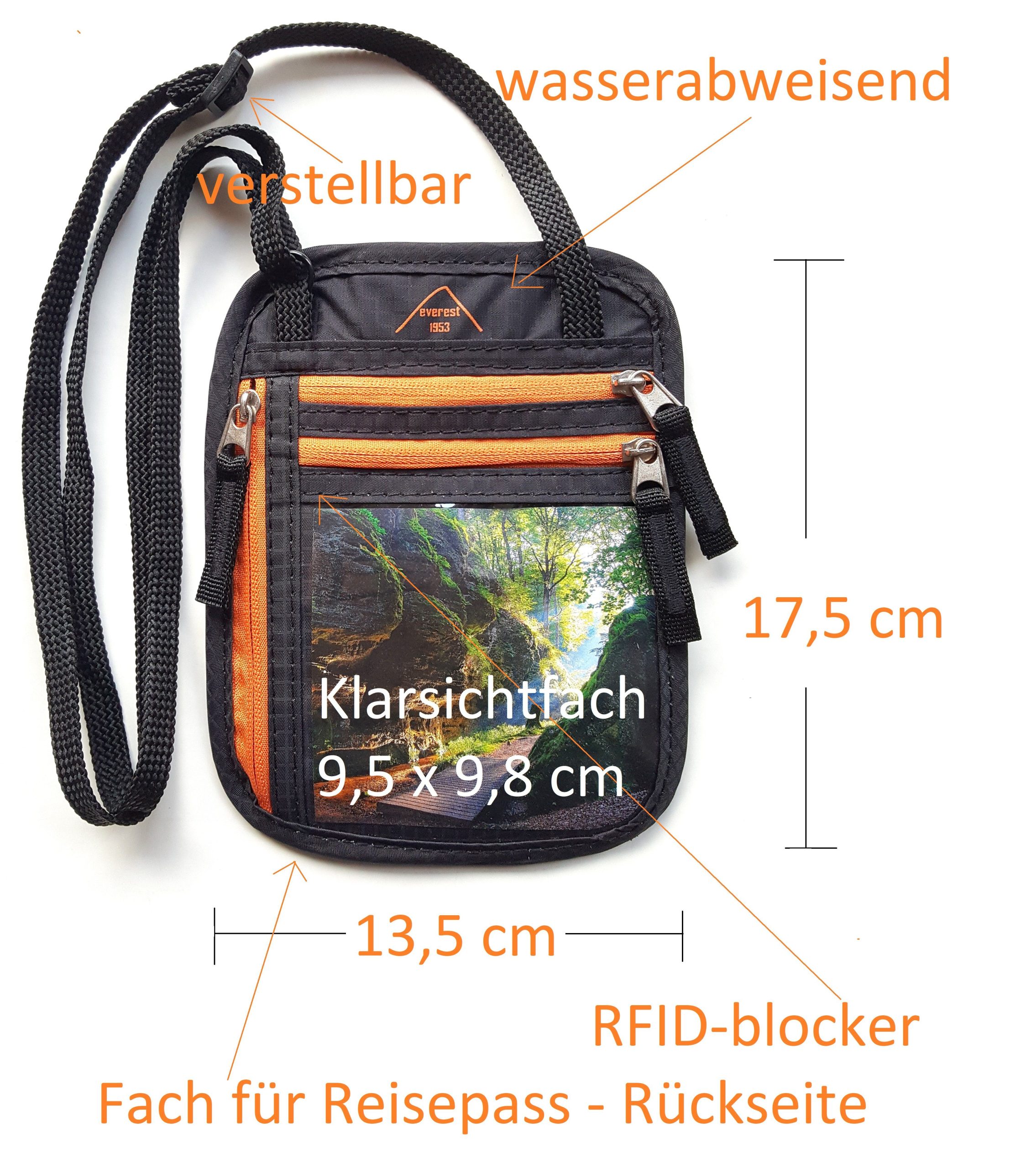 Produktname: everest 1953 Brustbeutel Pumori Brusttasche mit RFID blocker Paßhalter