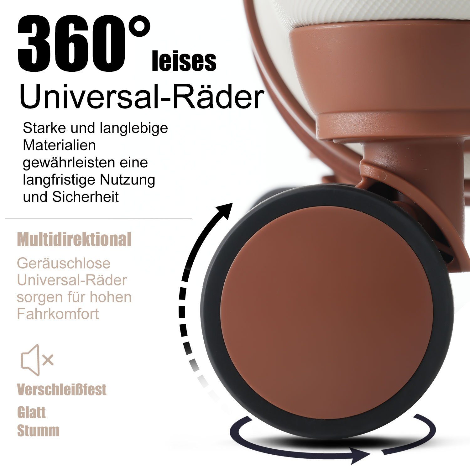 - Leichtgängige, rundum drehbare Rollen