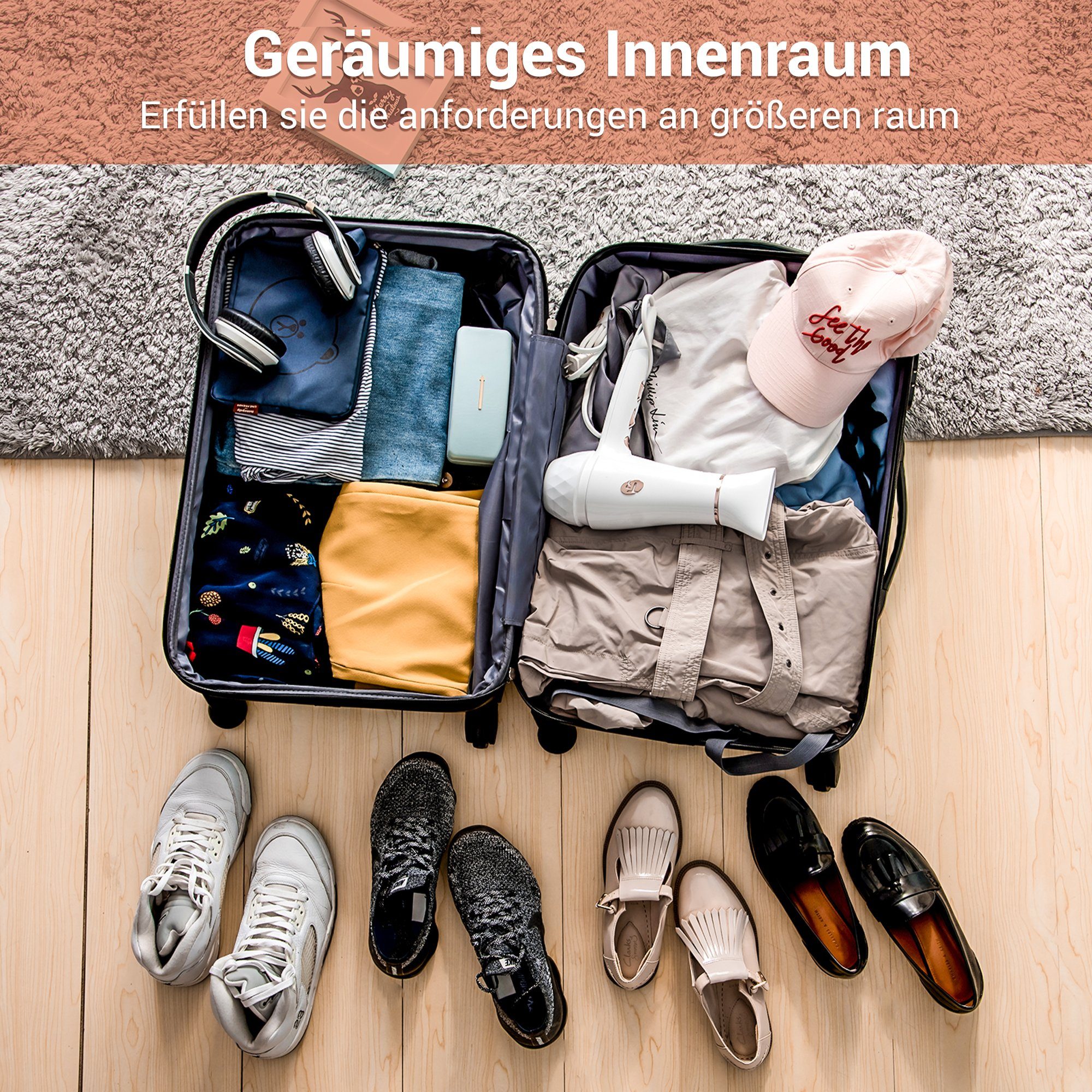 - Smooth-rolling, 360-degree spinner wheels