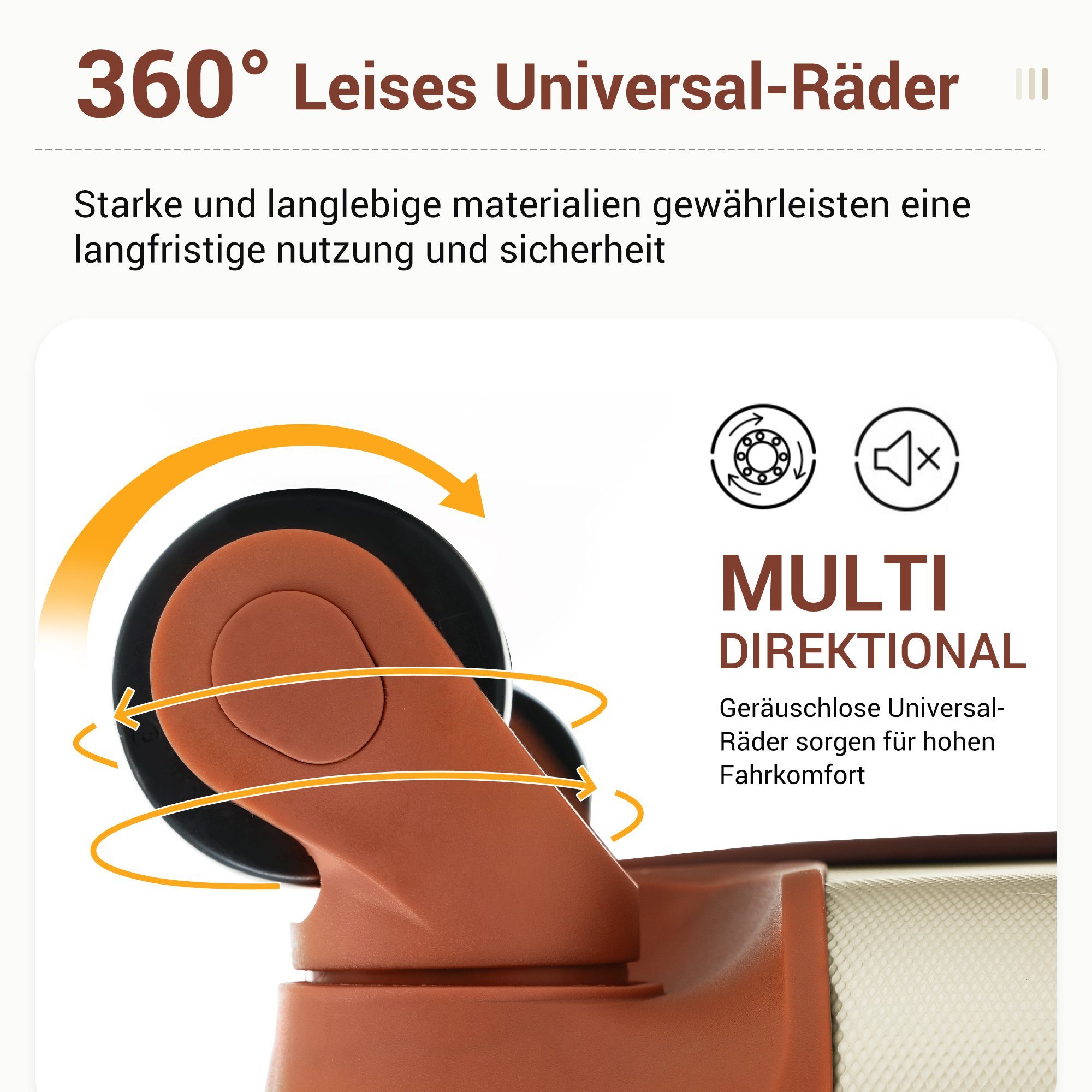 - Smooth-rolling, 360-degree spinner wheels