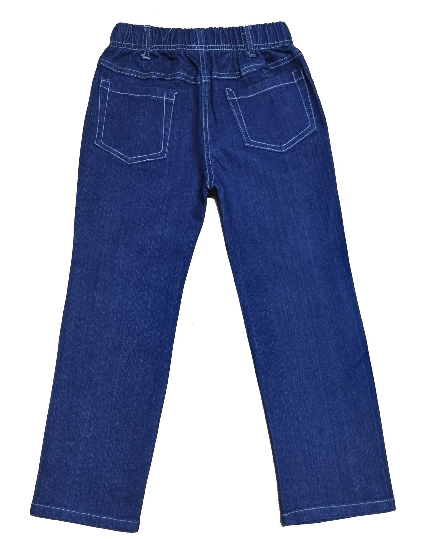 Stylish and comfortable stretch denim jeans for girls. Featuring a convenient elastic waistband with a decorative label, these jeans offer ease of movement and a touch of personality. They include two front pockets and two back pockets. Available in sizes: 4 (98-104), 6 (110-116), 8 (122-128), 10 (128-134), 12 (140-146), and 14 (152-158). Perfect for everyday wear and play, these jeans blend fashion and functionality for the modern girl. Made with high-quality denim for lasting durability and a flattering fit.