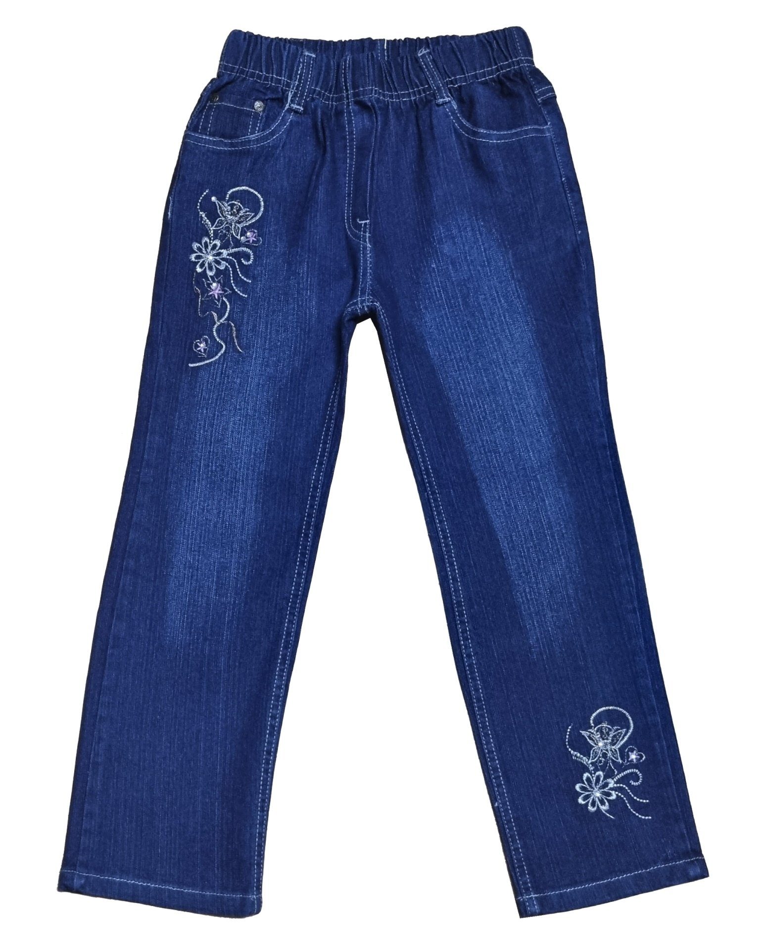Comfortable stretch denim jeans for girls with elastic waistband and decorative label. Available in sizes 4-14. Stylish and durable for everyday fun!