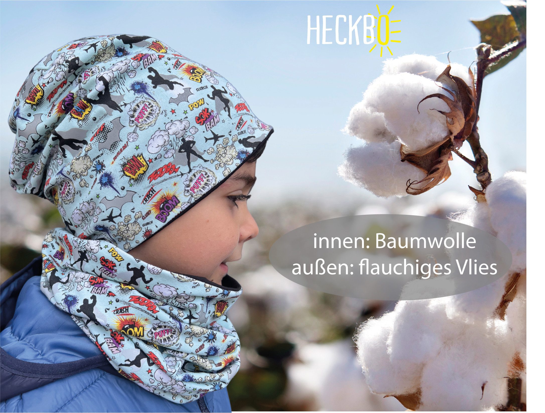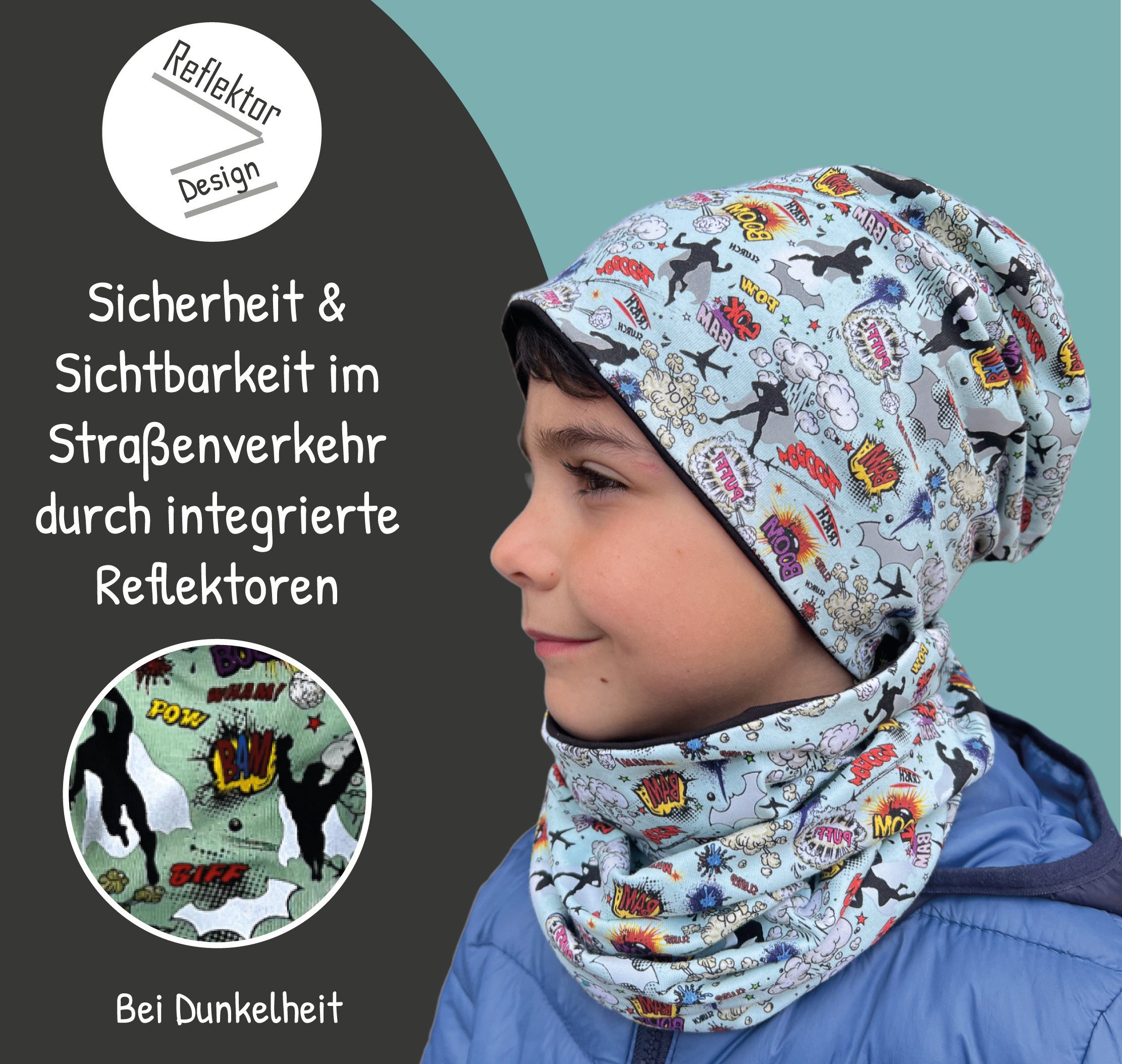HECKBO Kinder Set: Reflective Beanie & Soft Scarf – 95% Cotton – Perfect for Spring, Autumn & Winter.