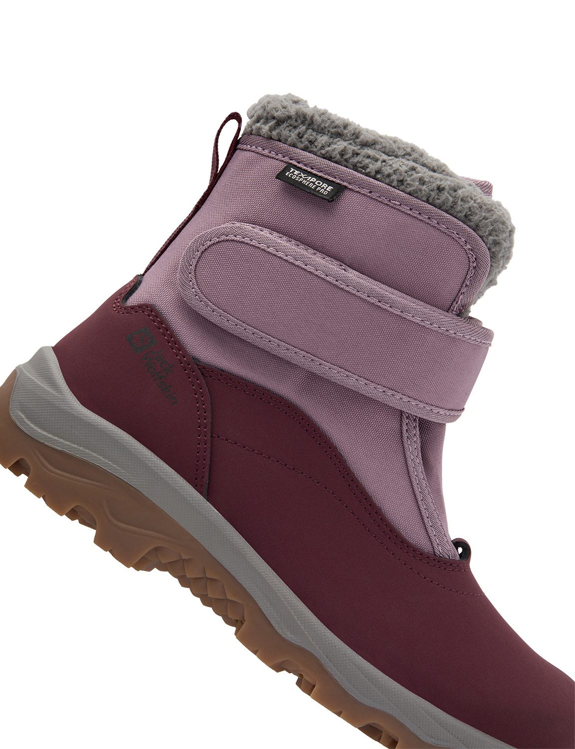 Equip your little explorers for winter adventures with the Jack Wolfskin VOJO SHELL TEXAPORE MID VC Kids‘ Outdoor Winter Boots. Designed to keep tiny feet warm even in extreme conditions (down to -30°C), these boots feature a breathable and waterproof TEXAPORE ECOSPHERE membrane made from recycled materials. A full-length polyurethane leather-look reinforcement provides durability, while the deep sole profile ensures excellent grip. The stylish textile upper adds a modern touch. The large Velcro closure makes them easy for kids to put on and take off, encouraging independence. Perfect for school commutes or outdoor play, these boots offer warmth, protection, and a touch of Jack Wolfskin quality.