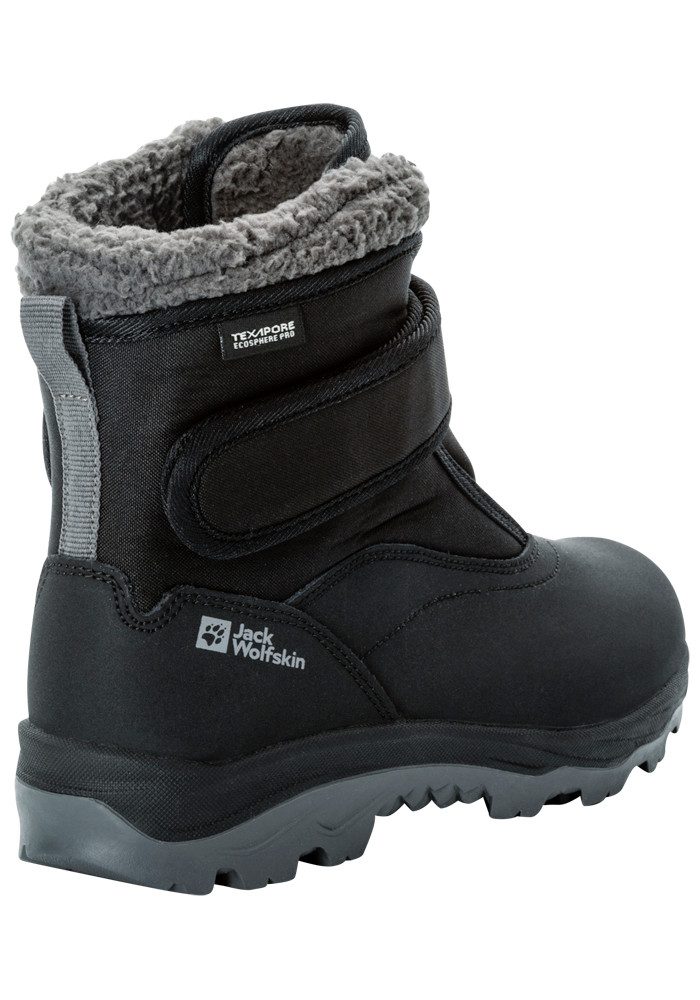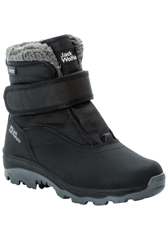 Equip your little explorers for winter adventures with the Jack Wolfskin VOJO SHELL TEXAPORE MID VC Kids‘ Outdoor Winter Boots. Designed to keep tiny feet warm even in extreme conditions (down to -30°C), these boots feature a breathable and waterproof TEXAPORE ECOSPHERE membrane made from recycled materials. A full-length polyurethane leather-look reinforcement provides durability, while the deep sole profile ensures excellent grip. The stylish textile upper adds a modern touch. The large Velcro closure makes them easy for kids to put on and take off, encouraging independence. Perfect for school commutes or outdoor play, these boots offer warmth, protection, and a touch of Jack Wolfskin quality.