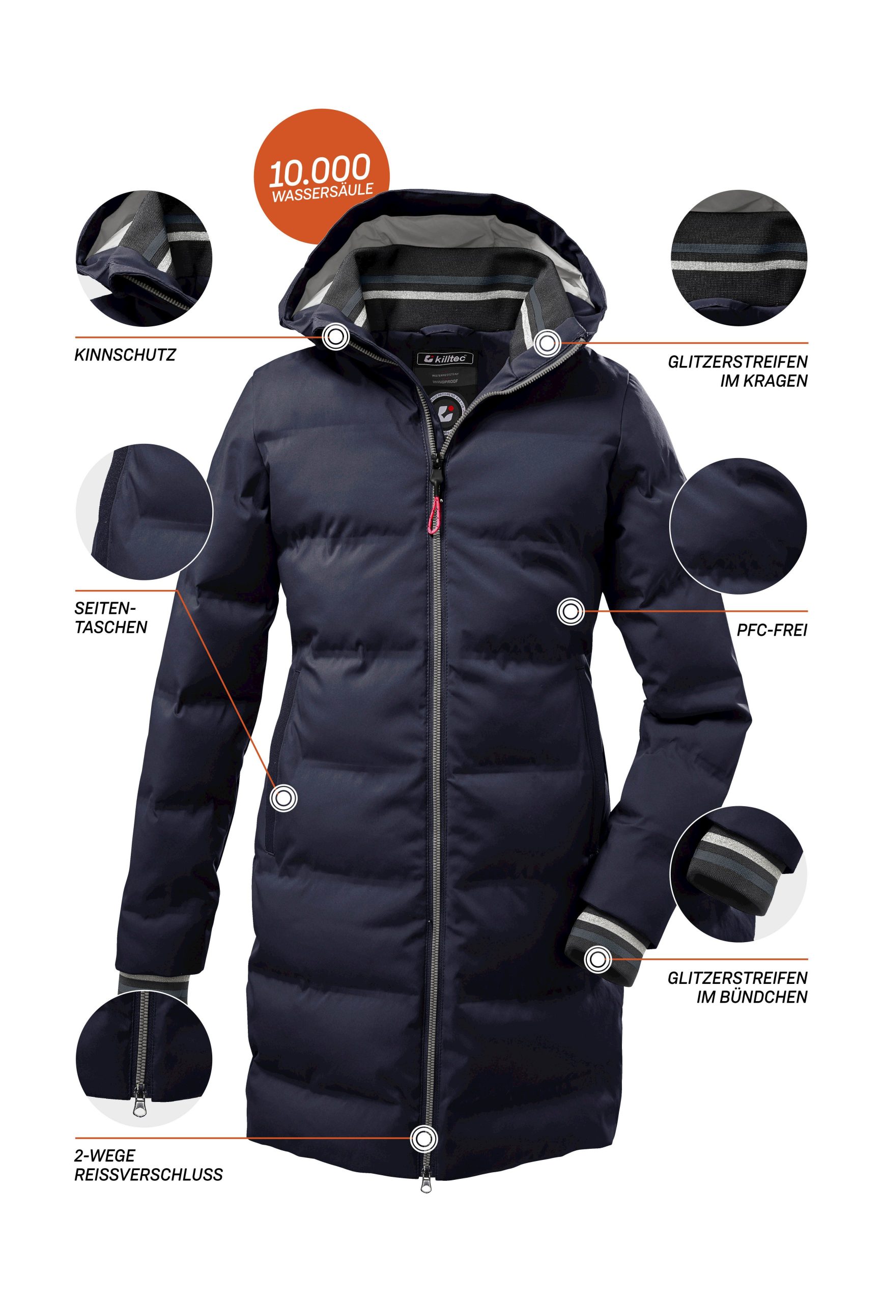 Stay warm and stylish this winter with the Killtec Girls‘ quilted parka. This beautifully insulated parka features a down-like appearance with sealed chambers, providing exceptional warmth. With a waterproof rating of 10,000mm, it’s both waterproof and windproof, perfect for braving the elements. Ribbed cuffs at the adjustable sleeves prevent drafts, while the adjustable hood and ribbed collar provide extra warmth. The 2-way zipper allows for ease of movement and includes a chin guard for added comfort. Two practical pockets and an interior pocket offer convenient storage. Killtec is committed to sustainability, employing responsible manufacturing processes. This winter coat is treated with fluorine-free agents for a more eco-friendly choice.