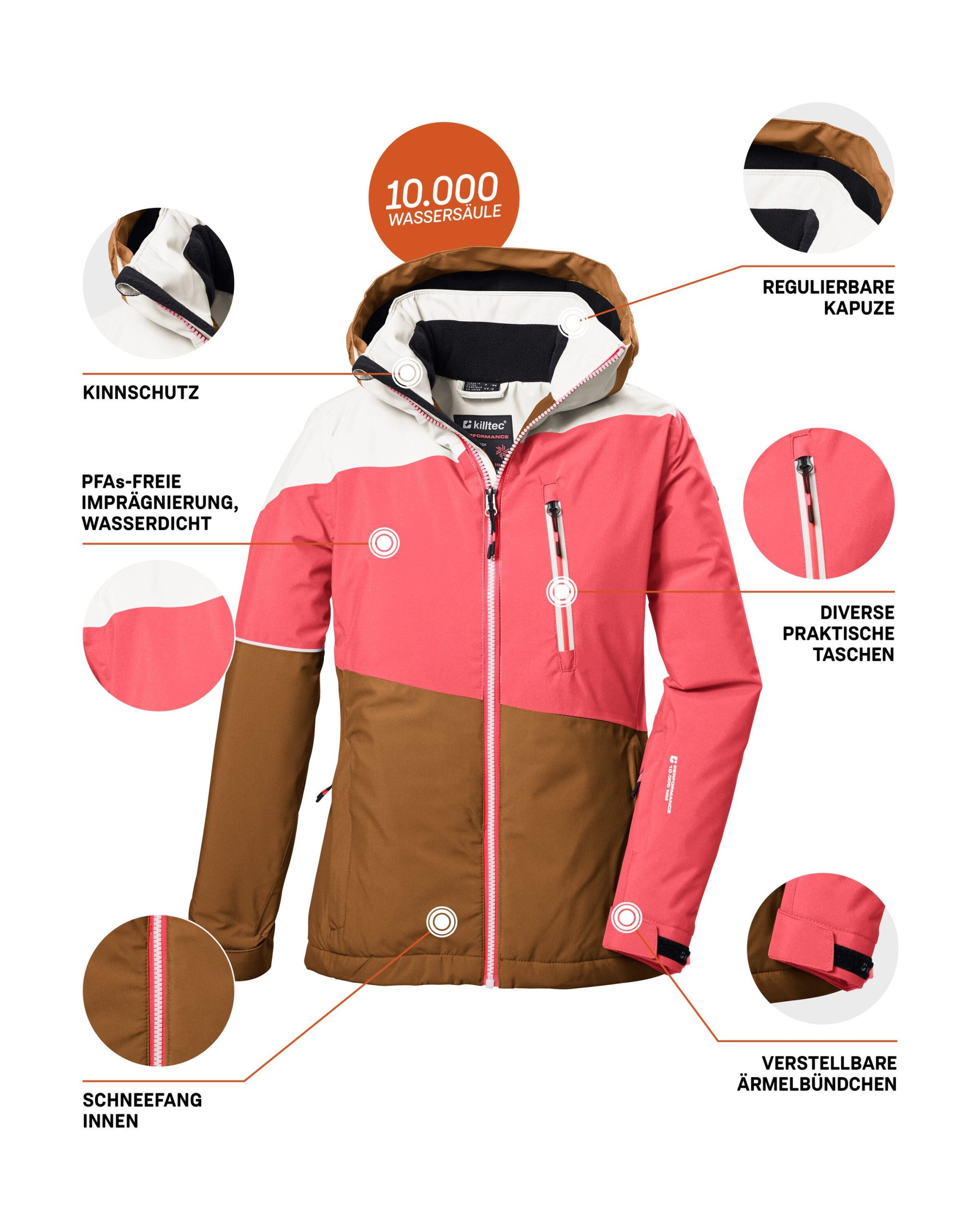The Killtec KSW 331 Girls Ski Jacket blends stylish design with high functionality for young skiers.