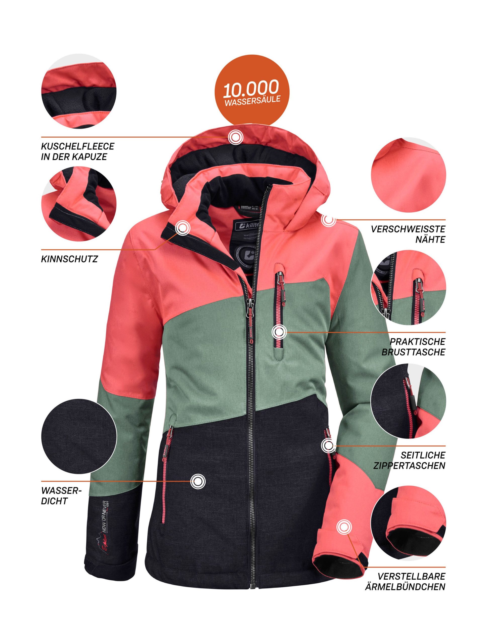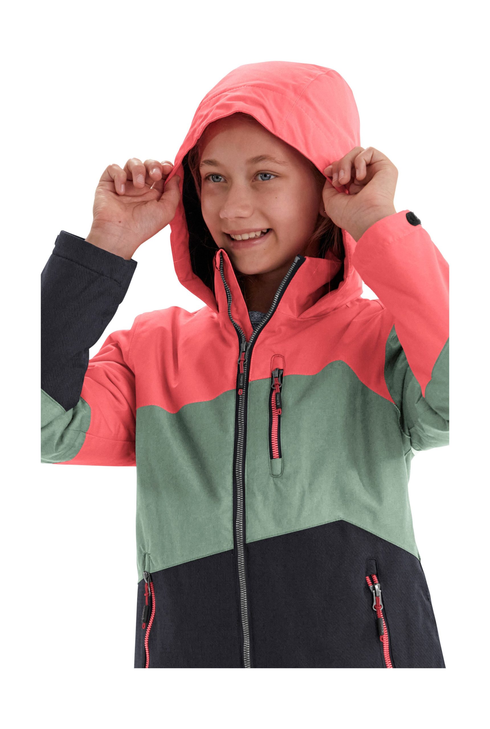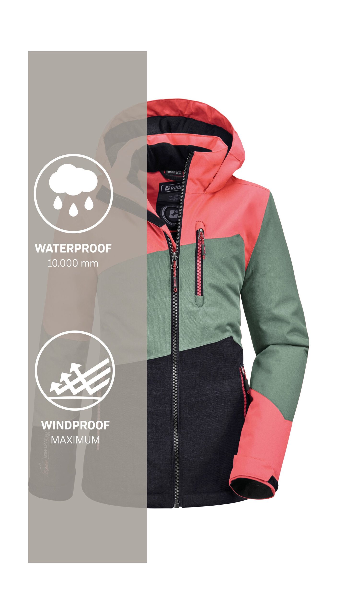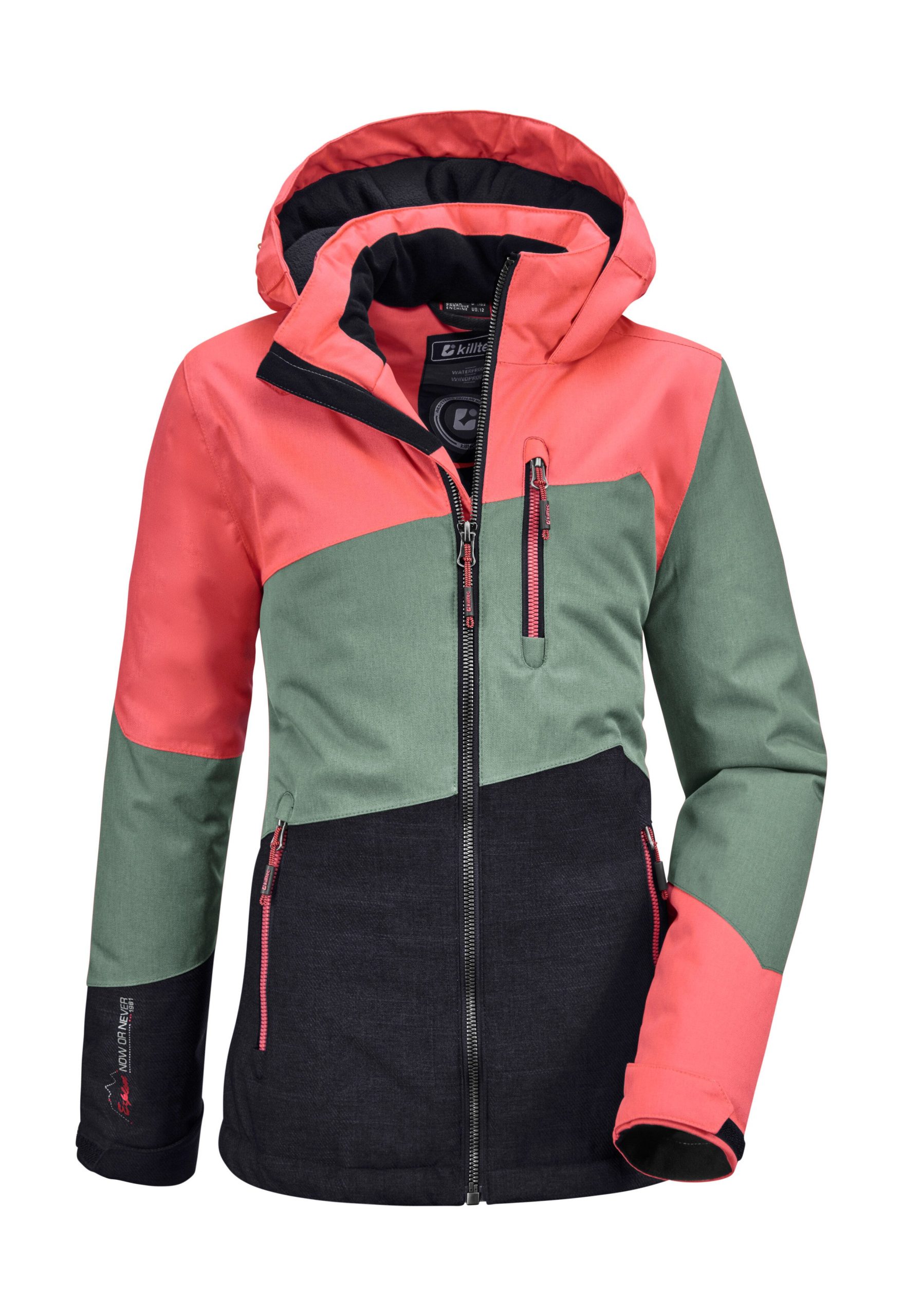 Stylish & waterproof Killtec Lynge Girls‘ Outdoor Jacket. Fleece-lined for warmth, adjustable cuffs, and secure pockets.