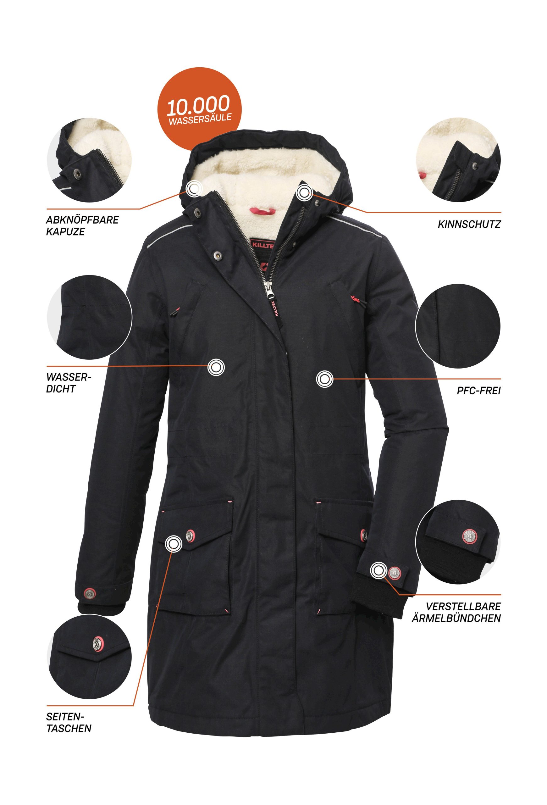 Mit dem Mädchen Funktionsmantel von killtec geht’s kuschelig warm durch den Winter. Der Mantel hat verschweißte Nähte und ist 100% wasser- und winddicht mit einer 10.000 mm Wasser Säule. Das weiche Teddyfell im Innenern hält wunderbar warm. Die Kapuze ist ebenfalls weich gefüttert und lässt sich bei Bedarf abknöpfen. An den verstellbaren Ärmelabschlüssen befinden sich bequem Strickbündchen. Der verdeckte Reißverschluss ist mit einem praktischen Kinnschutz versehen. Zwei aufgesetzte Taschen sowie zwei Brusttaschen bieten genügend Stauraum für alles Wichtige. Außerdem ist der Mantel mit modisch reflektierenden Elementen ausgestattet. killtec liegt es besonders am Herzen, die Kollektionen nachhaltiger und zukunftsfähiger zu machen. So setzt killtec verstärkt auf verantwortungsbewusstere Herstellungsverfahren. Dieser Wintermantel wurde daher mit fluorfreien Mitteln imprägniert.