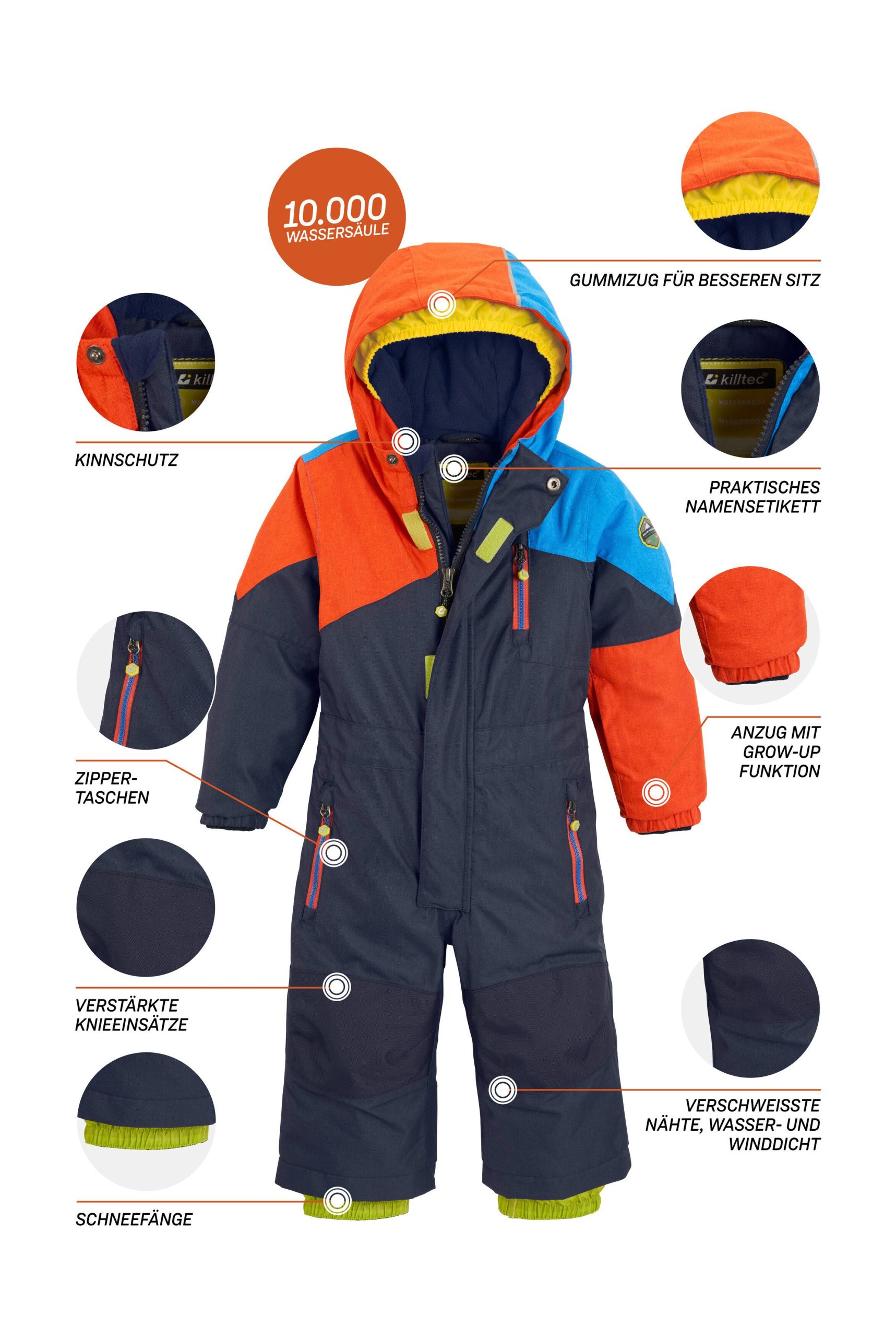 Der Killtec Overall für die Kleinsten überzeugt durch fröhliches Colourblock Design und praktische Funktionen.