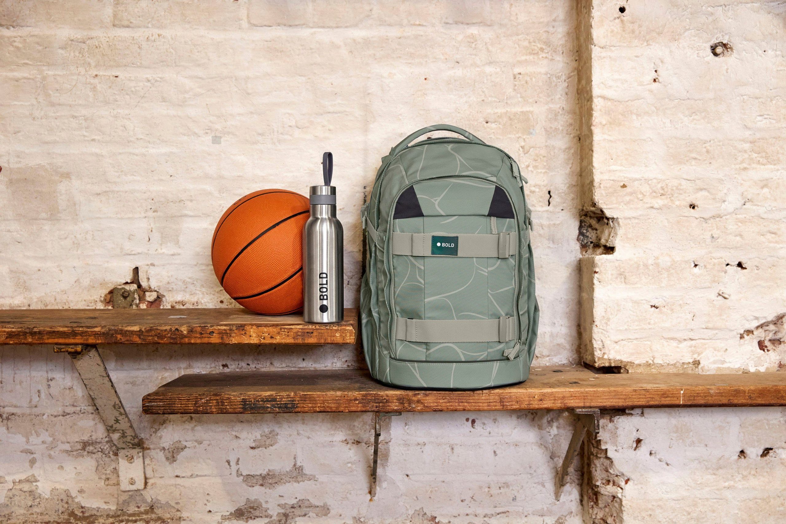 BE BOLD. BE YOU! With your new school backpack, we welcome you to the next level: Upgrade your school style with the BOLD Origin School Backpack! With the school backpack and accessories from the BOLD collection, you will experience new things and surpass yourself. BE BOLD. BE ERGONOMIC. What your parents think: The school backpack must be ergonomic. What that means for you: Your back will be spared. Clear! With the BOLD Origin School Backpack, you can adjust your individual fit with the height-adjustable back panel so that it feels good for you. An adjustable chest strap, carrying straps, the padded back section, and the padded hip belts, which you can easily remove, also relieve your back. Adjustable side straps keep the weight close to your back. BE BOLD. BE LIGHT, STABLE & VISIBLE. With only 1290 g with a volume of 30 l, the BOLD Origin school backpack is a real lightweight. It is also dirt and water repellent. Another plus point that your parents will certainly find interesting: The school backpack is equipped with numerous reflectors on the front and sides for better visibility. BE BOLD. BE CLEVER. Keeping things tidy? No problem with the ORIGIN, because you can look forward to lots of storage space! In addition to the large main compartments, the backpack offers practical pockets for A5 notebooks, books, and your tablet. Particularly important: The extra pocket for your smartphone and the power bank with a headphone jack. Large side pockets offer space for the drinking bottle or the umbrella and are provided with an opening in case something leaks. Helmets or clothing can be easily attached to the strap. In many inner pockets you can store all your things neatly. So you can now decide for yourself how you want to organize yourself! BE BOLD. BE SUSTAINABLE. Sustainability requires courage to go new ways. That’s exactly what you can do with your BOLD Origin Backpack: Courageously! We work every day to get better: As a climate-neutral company, we work every day to act socially and ecologically responsibly – for example, by completely avoiding animal components in the manufacturing process and using fabric made from recycled polyester. Therefore, the fabric of the school backpack is made of 100% polyester (recycled).