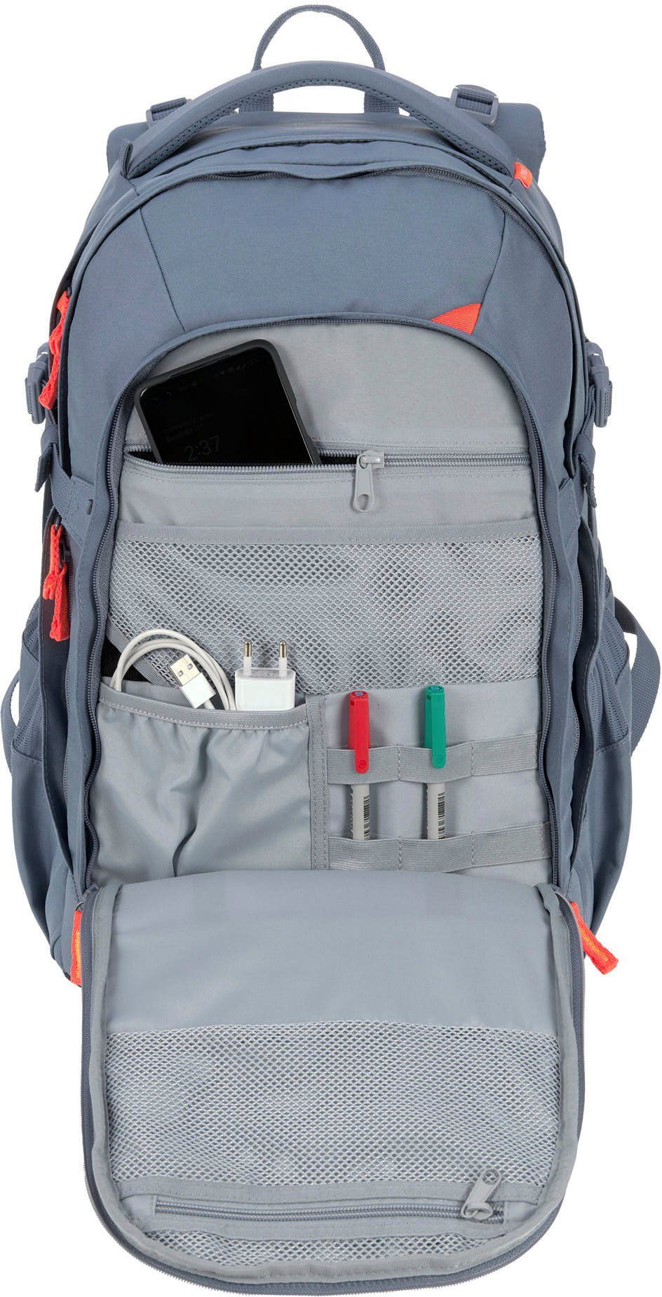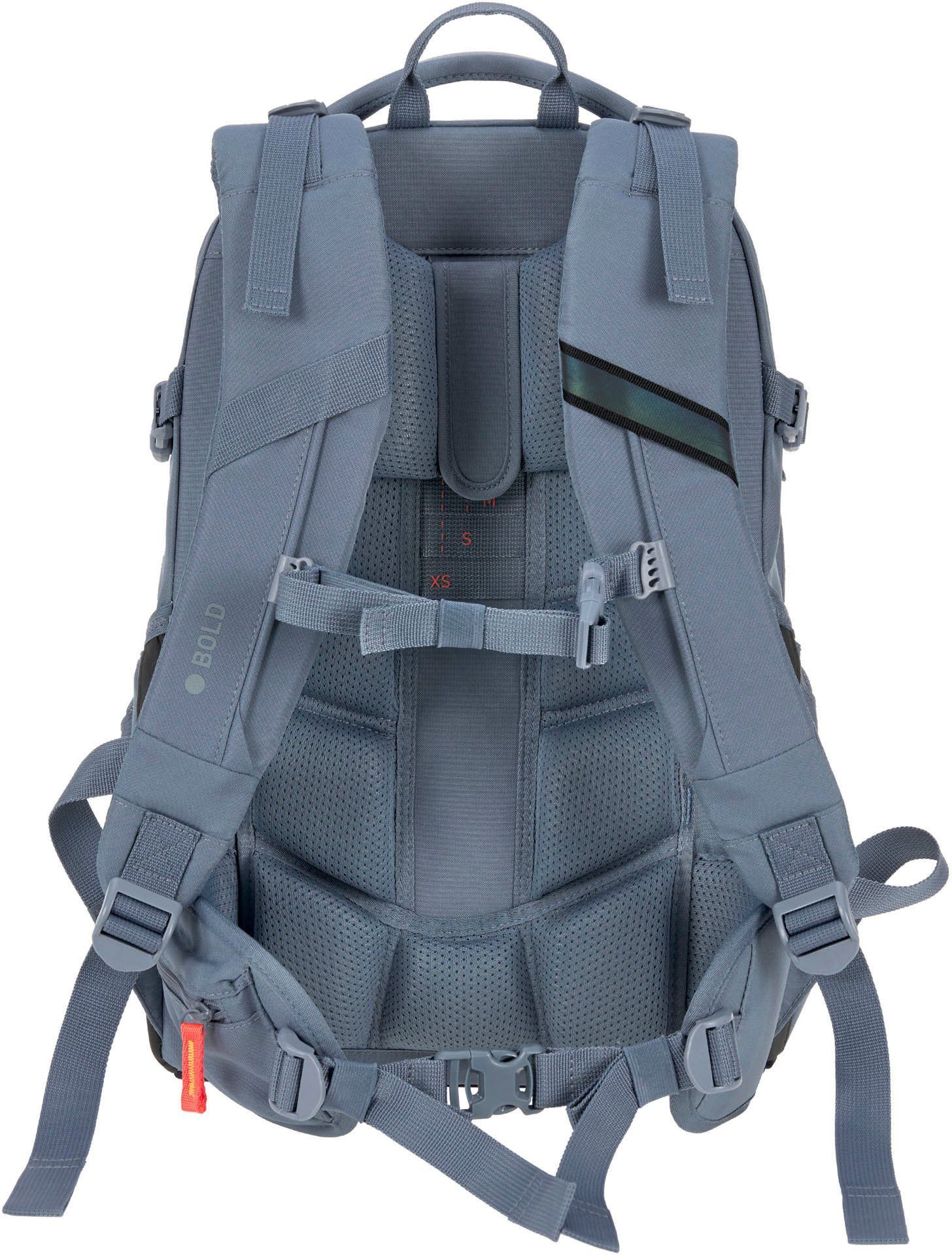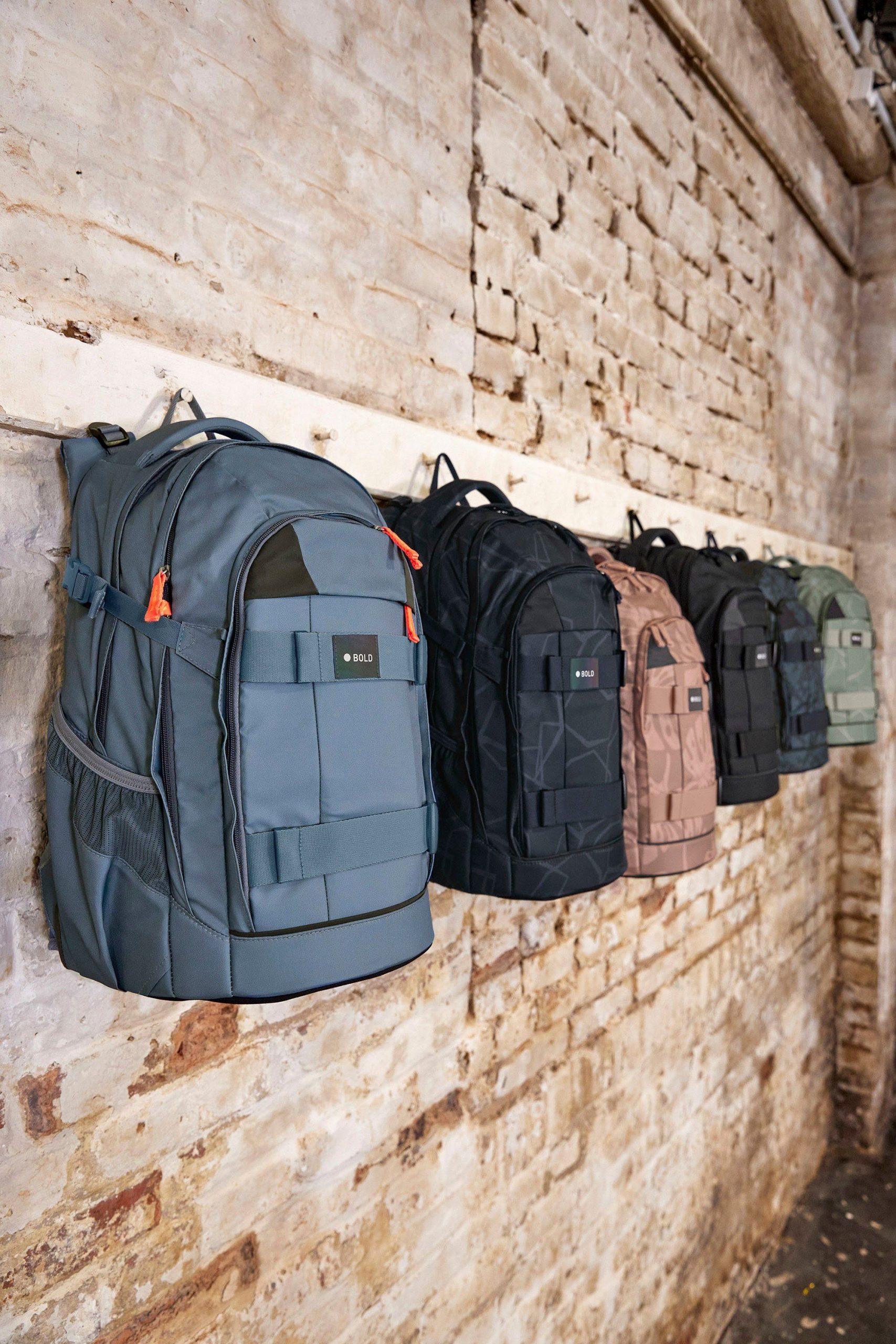 BE BOLD. BE YOU! With your new school backpack, we welcome you to the next level: Upgrade your school style with the BOLD Origin School Backpack! With the school backpack and accessories from the BOLD collection, you will experience new things and surpass yourself. BE BOLD. BE ERGONOMIC. What your parents think: The school backpack must be ergonomic. What that means for you: Your back will be spared. Clear! With the BOLD Origin School Backpack, you can adjust your individual fit with the height-adjustable back panel so that it feels good for you. An adjustable chest strap, carrying straps, the padded back section, and the padded hip belts, which you can easily remove, also relieve your back. Adjustable side straps keep the weight close to your back. BE BOLD. BE LIGHT, STABLE & VISIBLE. With only 1290 g with a volume of 30 l, the BOLD Origin school backpack is a real lightweight. It is also dirt and water repellent. Another plus point that your parents will certainly find interesting: The school backpack is equipped with numerous reflectors on the front and sides for better visibility. BE BOLD. BE CLEVER. Keeping things tidy? No problem with the ORIGIN, because you can look forward to lots of storage space! In addition to the large main compartments, the backpack offers practical pockets for A5 notebooks, books, and your tablet. Particularly important: The extra pocket for your smartphone and the power bank with a headphone jack. Large side pockets offer space for the drinking bottle or the umbrella and are provided with an opening in case something leaks. Helmets or clothing can be easily attached to the strap. In many inner pockets you can store all your things neatly. So you can now decide for yourself how you want to organize yourself! BE BOLD. BE SUSTAINABLE. Sustainability requires courage to go new ways. That’s exactly what you can do with your BOLD Origin Backpack: Courageously! We work every day to get better: As a climate-neutral company, we work every day to act socially and ecologically responsibly – for example, by completely avoiding animal components in the manufacturing process and using fabric made from recycled polyester. Therefore, the fabric of the school backpack is made of 100% polyester (recycled).