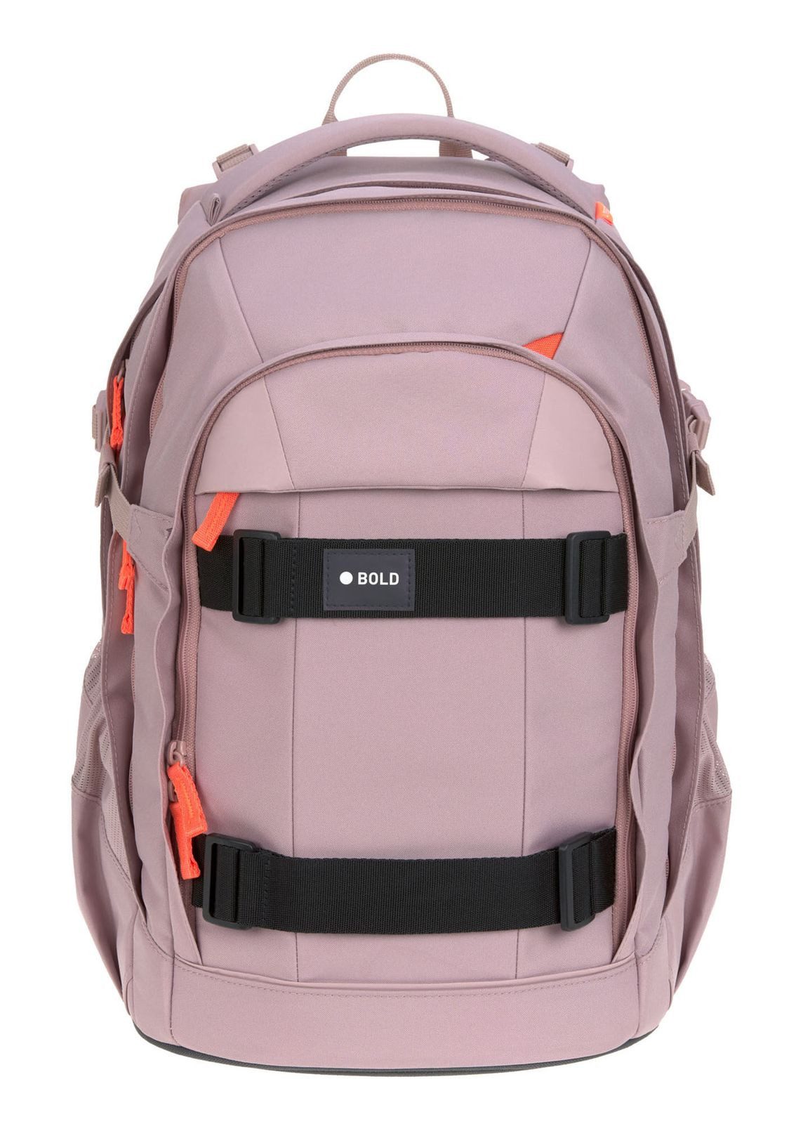BE BOLD. BE YOU! With your new school backpack, we welcome you to the next level: Upgrade your school style with the BOLD Origin School Backpack! With the school backpack and accessories from the BOLD collection, you will experience new things and surpass yourself. BE BOLD. BE ERGONOMIC. What your parents think: The school backpack must be ergonomic. What that means for you: Your back will be spared. Clear! With the BOLD Origin School Backpack, you can adjust your individual fit with the height-adjustable back panel so that it feels good for you. An adjustable chest strap, carrying straps, the padded back section, and the padded hip belts, which you can easily remove, also relieve your back. Adjustable side straps keep the weight close to your back. BE BOLD. BE LIGHT, STABLE & VISIBLE. With only 1290 g with a volume of 30 l, the BOLD Origin school backpack is a real lightweight. It is also dirt and water repellent. Another plus point that your parents will certainly find interesting: The school backpack is equipped with numerous reflectors on the front and sides for better visibility. BE BOLD. BE CLEVER. Keeping things tidy? No problem with the ORIGIN, because you can look forward to lots of storage space! In addition to the large main compartments, the backpack offers practical pockets for A5 notebooks, books, and your tablet. Particularly important: The extra pocket for your smartphone and the power bank with a headphone jack. Large side pockets offer space for the drinking bottle or the umbrella and are provided with an opening in case something leaks. Helmets or clothing can be easily attached to the strap. In many inner pockets you can store all your things neatly. So you can now decide for yourself how you want to organize yourself! BE BOLD. BE SUSTAINABLE. Sustainability requires courage to go new ways. That’s exactly what you can do with your BOLD Origin Backpack: Courageously! We work every day to get better: As a climate-neutral company, we work every day to act socially and ecologically responsibly – for example, by completely avoiding animal components in the manufacturing process and using fabric made from recycled polyester. Therefore, the fabric of the school backpack is made of 100% polyester (recycled).