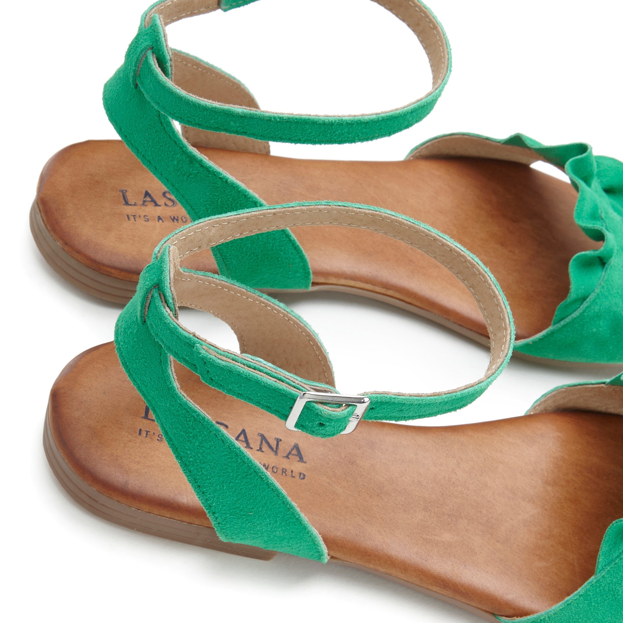 Entdecken Sie die perfekte Sommerbegleiterin: die wunderschöne LASCANA Sandale. Gefertigt aus feinstem Ziegenleder und mit einem komfortablen Innenfutter aus Schweinsleder, garantiert diese Sandale höchsten Tragekomfort. Die Rindslethersohle sorgt für zusätzliche Weichheit, während der praktische Schnallenverschluss für einen optimalen Halt sorgt. Die zarten Blumenapplikationen verleihen dieser Sandale einen verspielten und femininen Touch, der jedes Sommeroutfit aufwertet. Egal ob am Strand, in der Beachbar oder bei einem Open-Air-Konzert – mit dieser LASCANA Sandale sind Sie jederzeit stilvoll unterwegs. Gönnen Sie sich den Luxus von Qualität und Design, der Ihren Sommer unvergesslich macht. Erleben Sie den LASCANA Stil!