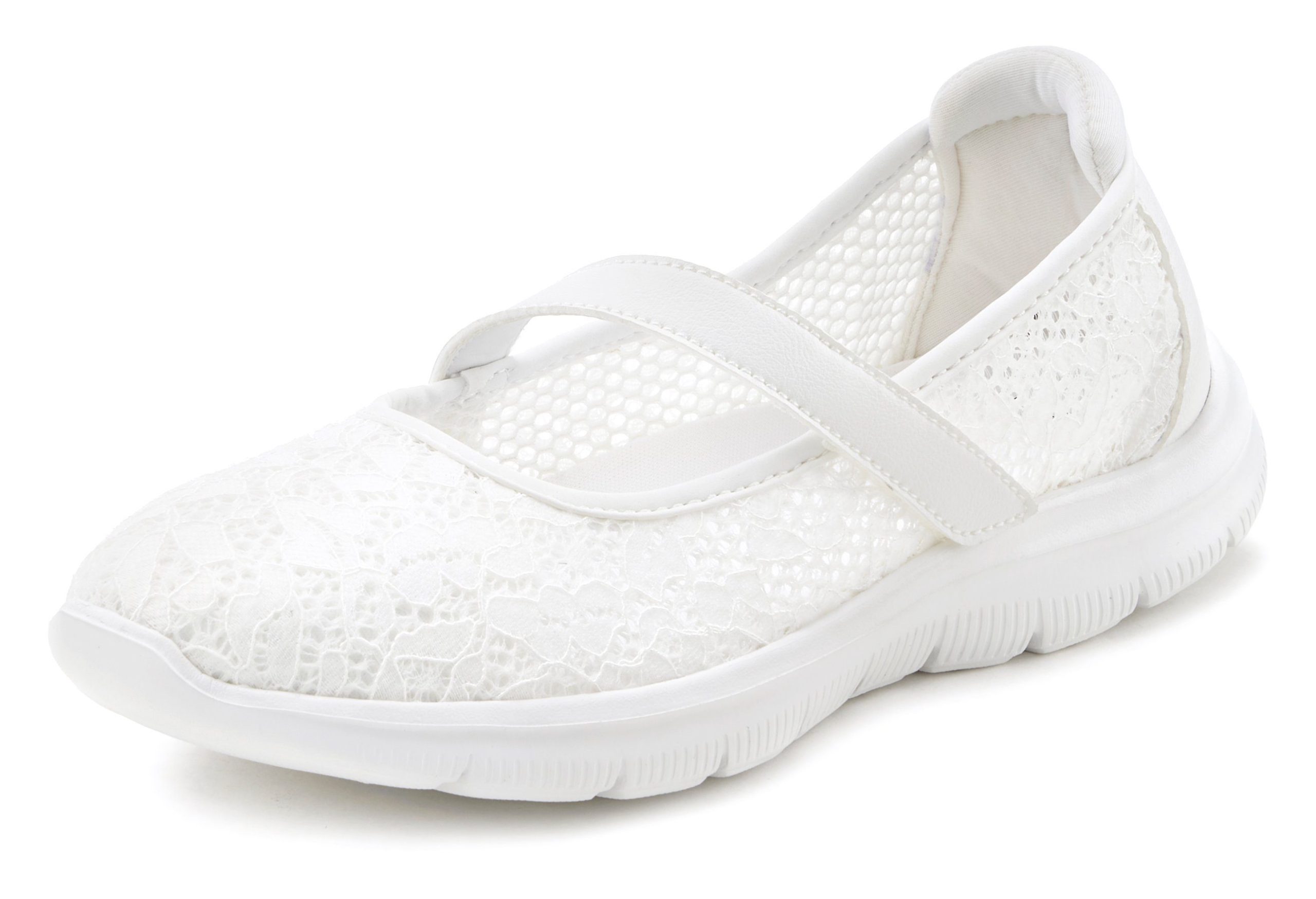 Komfort trifft Style – bei dem Slupper von Lascana. Der hübsche Spitzeneinsatz verleiht dem Freizeitschuh das gewisse Etwas. Der Klettverschluss sorgt für eine individuelle und bequeme Passform, die gepolsterten Fersenkappe garantiert Stabilität und Komfort. Die Spitzenslumper verfügen über eine herausnehmbare Innensohle, so kannst du auch lose Einlagen im Schuh verwenden. Das Obermaterial, das Futter und die Decksohle bestehen aus Textil, während die Laufsohle aus strapazierfähigem Synthereikmaterial gefertigt ist. Einfach hineinschlüpfen und wohlfühlen: in den Slumper von Lascana.