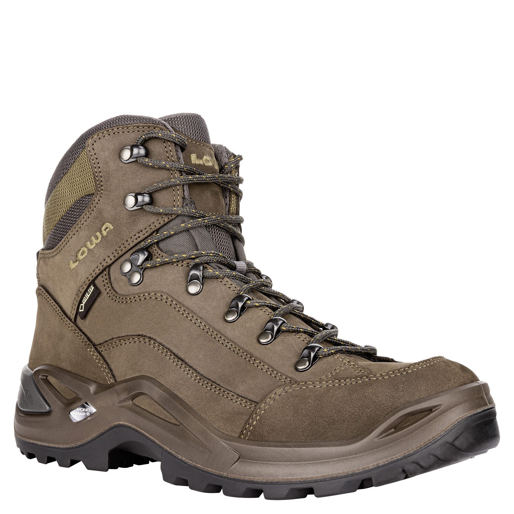 Lowa trekking boots: Durable nubuck leather, GORE-TEX® waterproof membrane, comfortable fit for normal width feet, classic design.