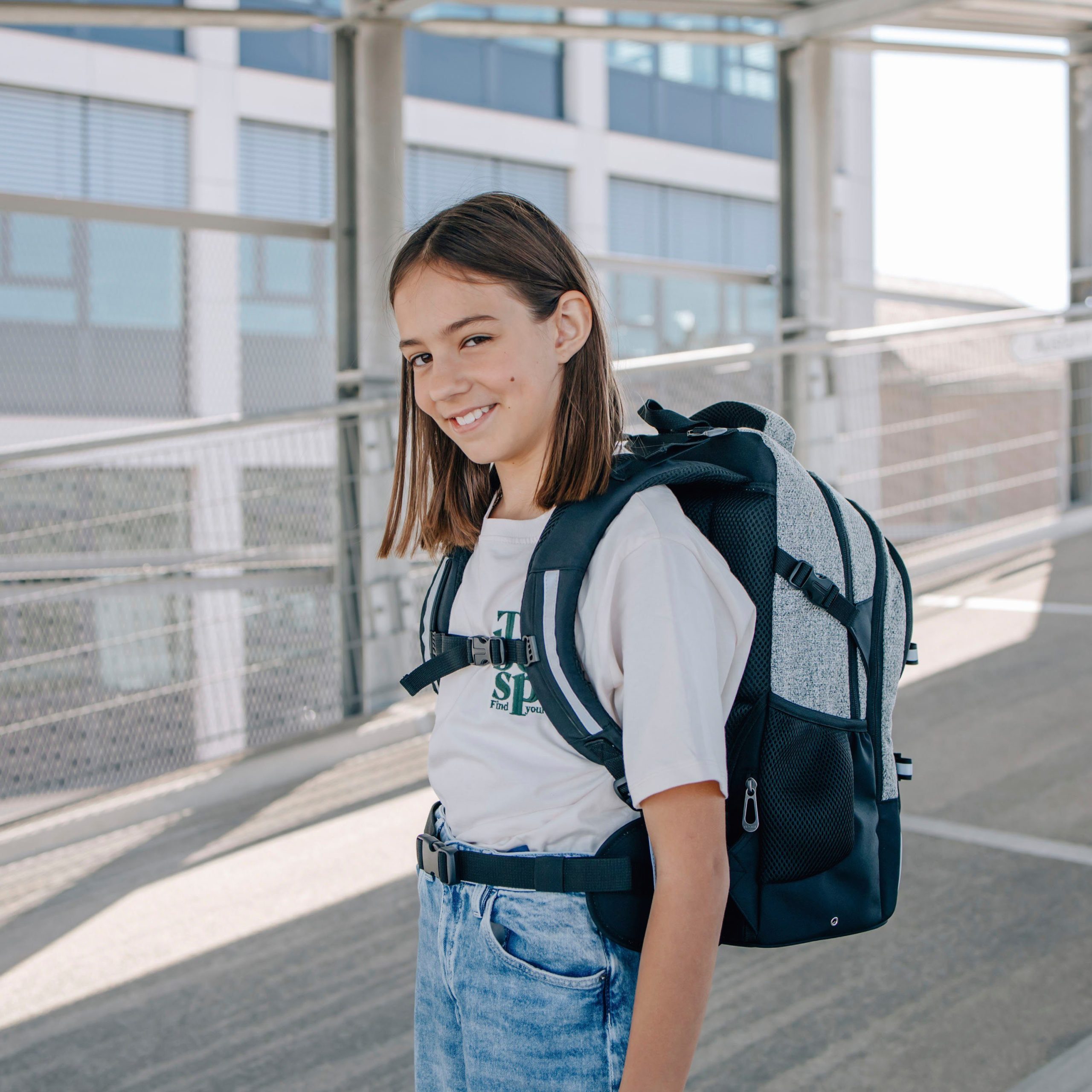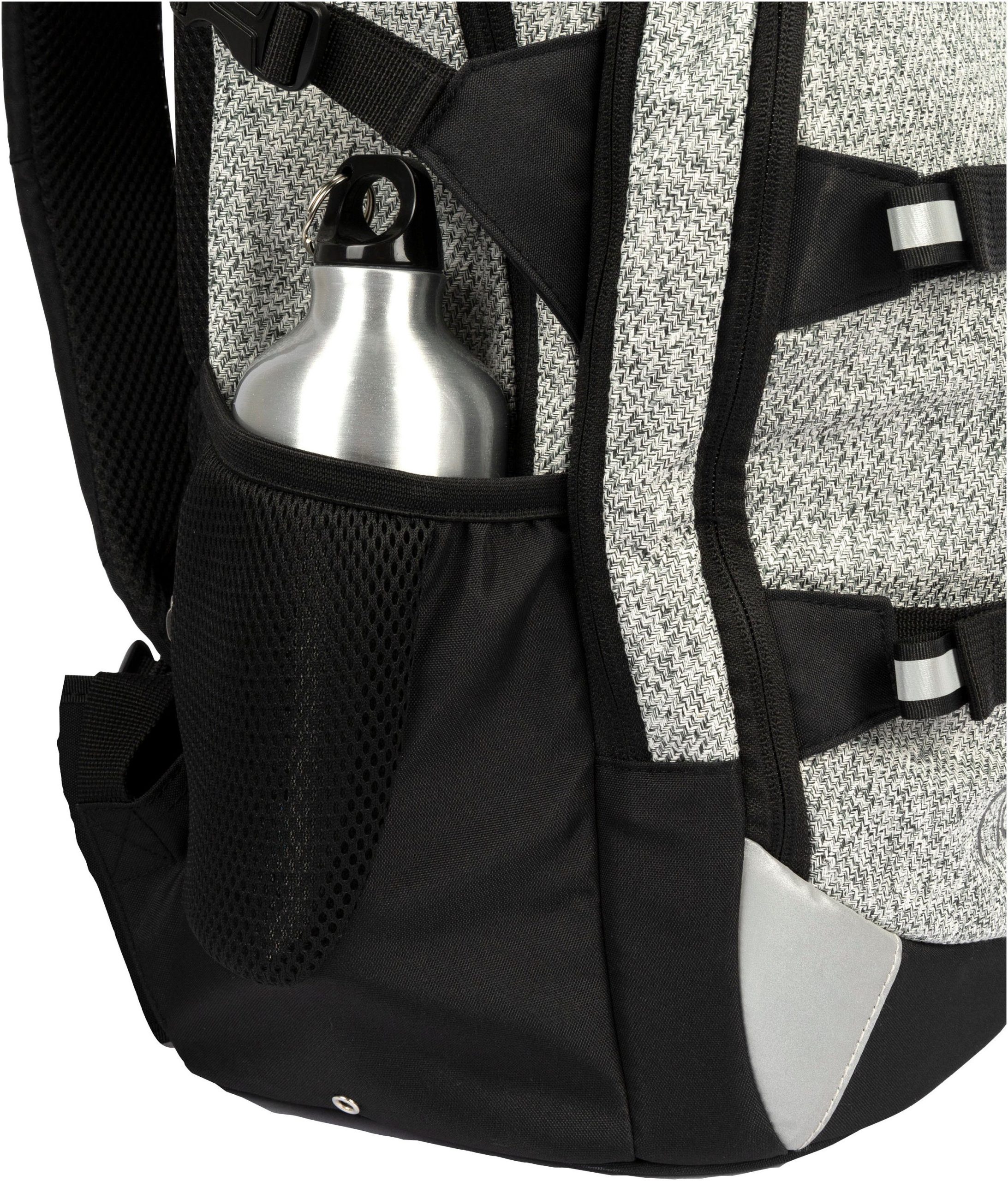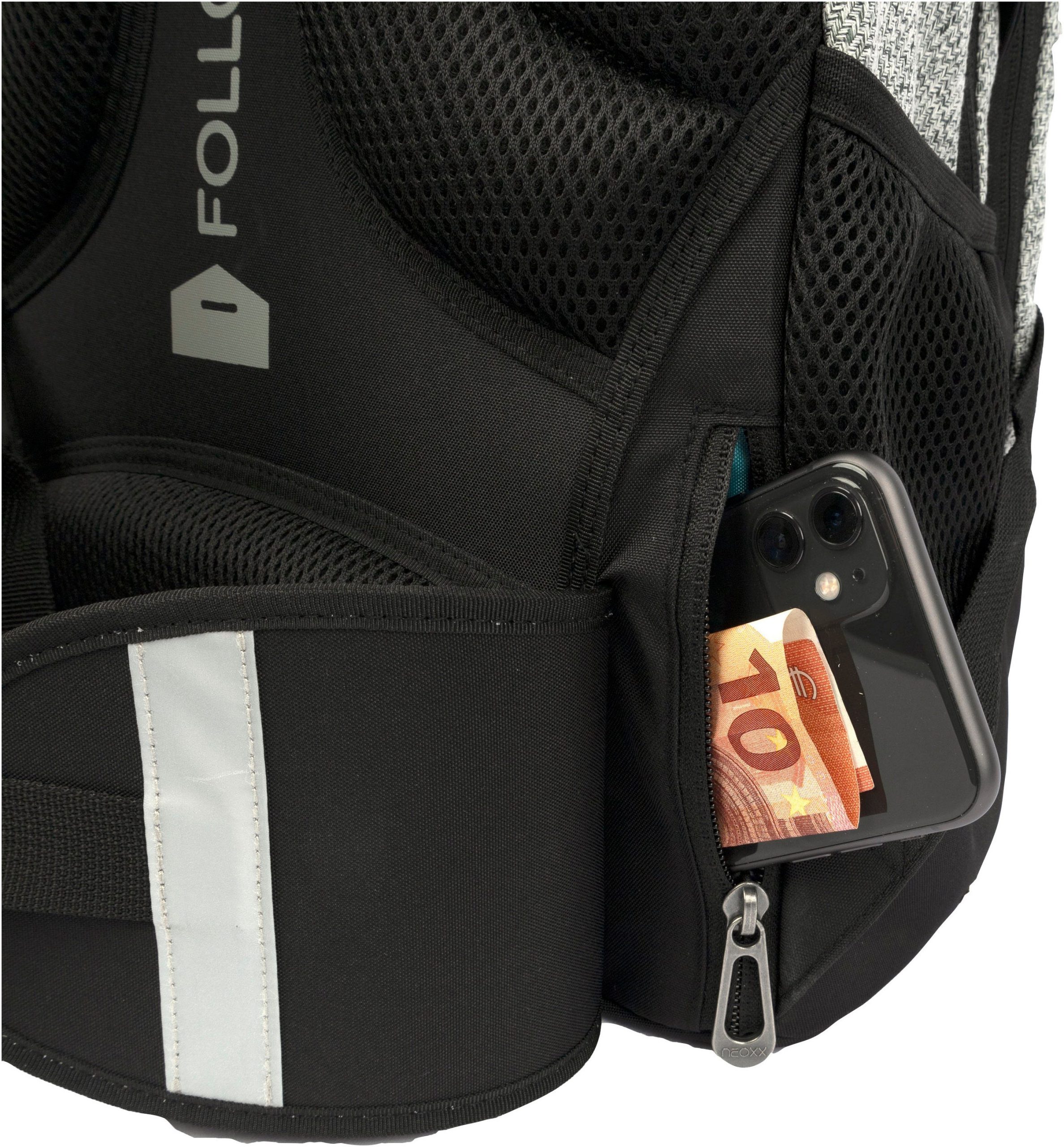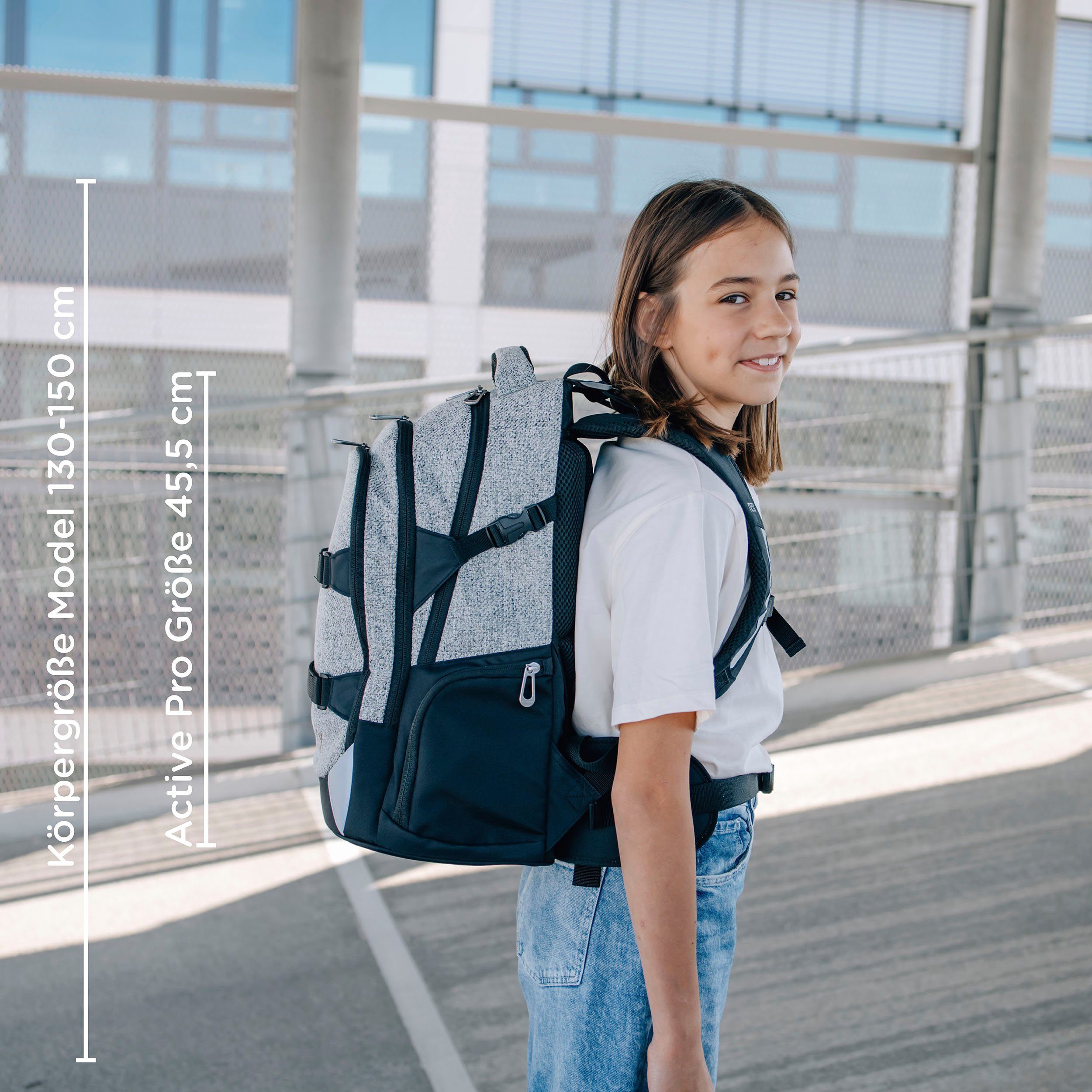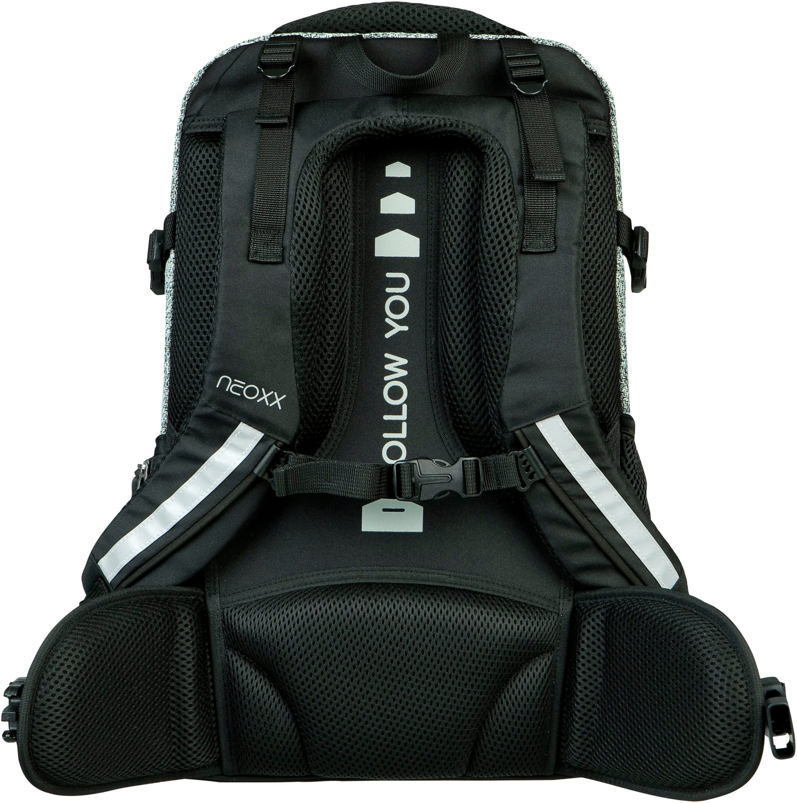 Der neoxx »Active Pro« Schulrucksack ist dein perfekter Begleiter ab der 5. Klasse. Der »Active Pro« Schulrucksack bietet jede Menge Stauraum für all deine Sachen: Mit ca. 26 Litern Volumen passt echt viel rein. Es gibt ein großes Fach mit Laptop-Organizer, Platz auch für sperrige Ordner und ein separates Fach für Hefte. Das Vorderfach bietet einen praktischen Netz-Organizer, Stifteschlaufen und ein Schlüsselband. Seitliche Fächer mit Reißverschluss sowie ein Gummizugband bieten Platz für Flaschen oder andere Dinge, die du schnell zur Hand haben möchtest. Der »Active Pro« Schulrucksack bietet auch höchsten Tragekomfort. Dank des gepolsterten Rückenbetts und den höhenverstellbaren, gepolsterten Trägern kannst du ihn bequem tragen. Der abnehmbare Hüftgurt entlastet deinen Rücken zusätzlich und durch den Brustgurt wird das Gewicht gleichmäßig verteilt. Mit den Lageverstellriemen und seitlichen Kompressionsriemen kannst du das Gewicht nah an deinem Rücken positionieren. Damit du auch im Straßenverkehr gut sichtbar bist, verfügt der »Active Pro« Schulrucksack über dezent Reflektorflächen an der Vorderseite und den Trägern. Der Rucksack besteht aus wasserabweisenden und robusten Materialien, damit er dich in jeder Situation begleiten kann. Mit dem neoxx Active Schulrucksack leistest du auch einen Beitrag zum Umweltschutz. Das Innenfutter des »Active Pro« Schulrucksacks besteht zu 100% aus recycelten PET-Flaschen. Für jeden Rucksack werden ca. 13 Flaschen recycelt. Zusätzlich hilft neoxx in Zusammenarbeit mit der Turtle Foundation Meeresschildkröten in einer sicheren Umgebung zu schlüpfen.
