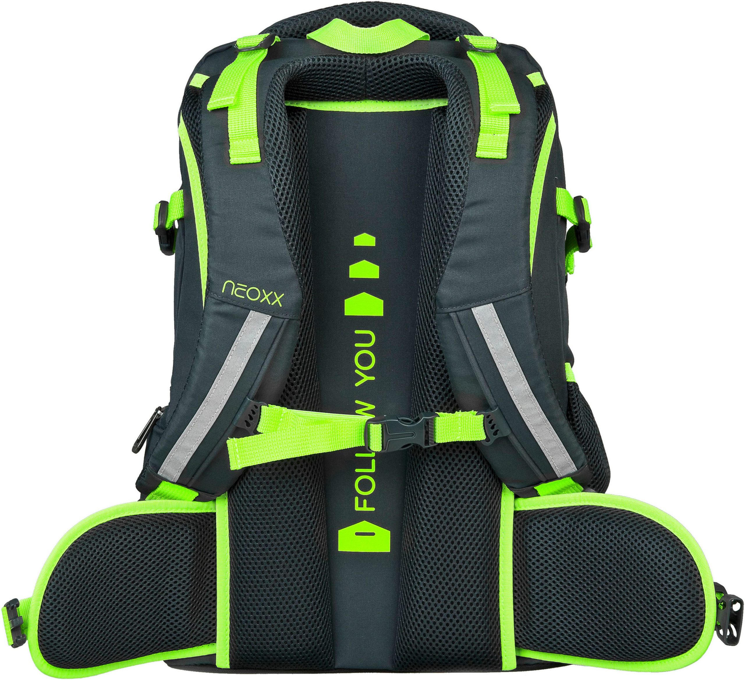 The neoxx BOOM! school backpack set combines eco-conscious design with outstanding functionality. Crafted from recycled PET bottles, this 2-piece set (rucksack and pencil case) minimizes environmental impact while providing ample space for school essentials. The included pencil case complements the backpack perfectly, providing a complete and organized school solution. neoxx – sustainable school gear.