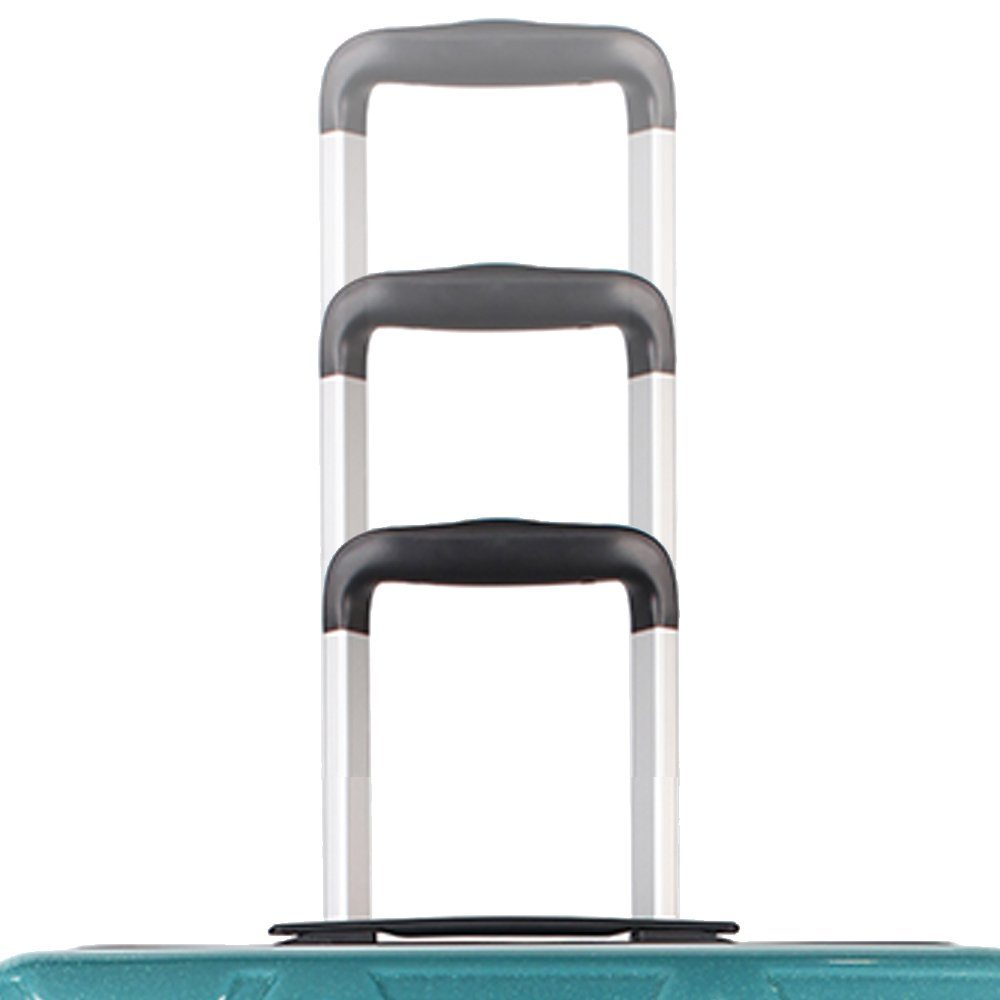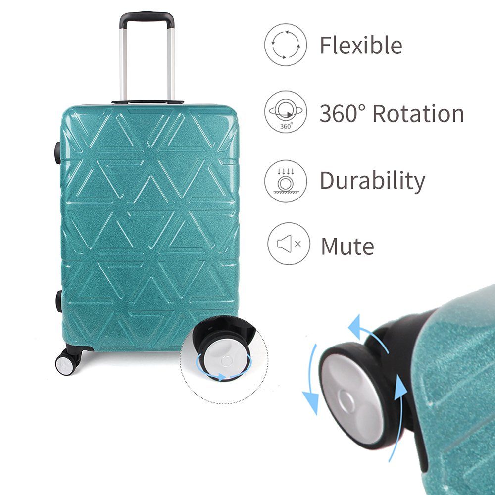 Experience travel in style with the NEWCOM Hartschalen-Trolley Reisekoffer. This vibrant, green suitcase boasts a dazzling glitter and shimmer design with geometric embossing, perfect for the fashion-conscious traveler.