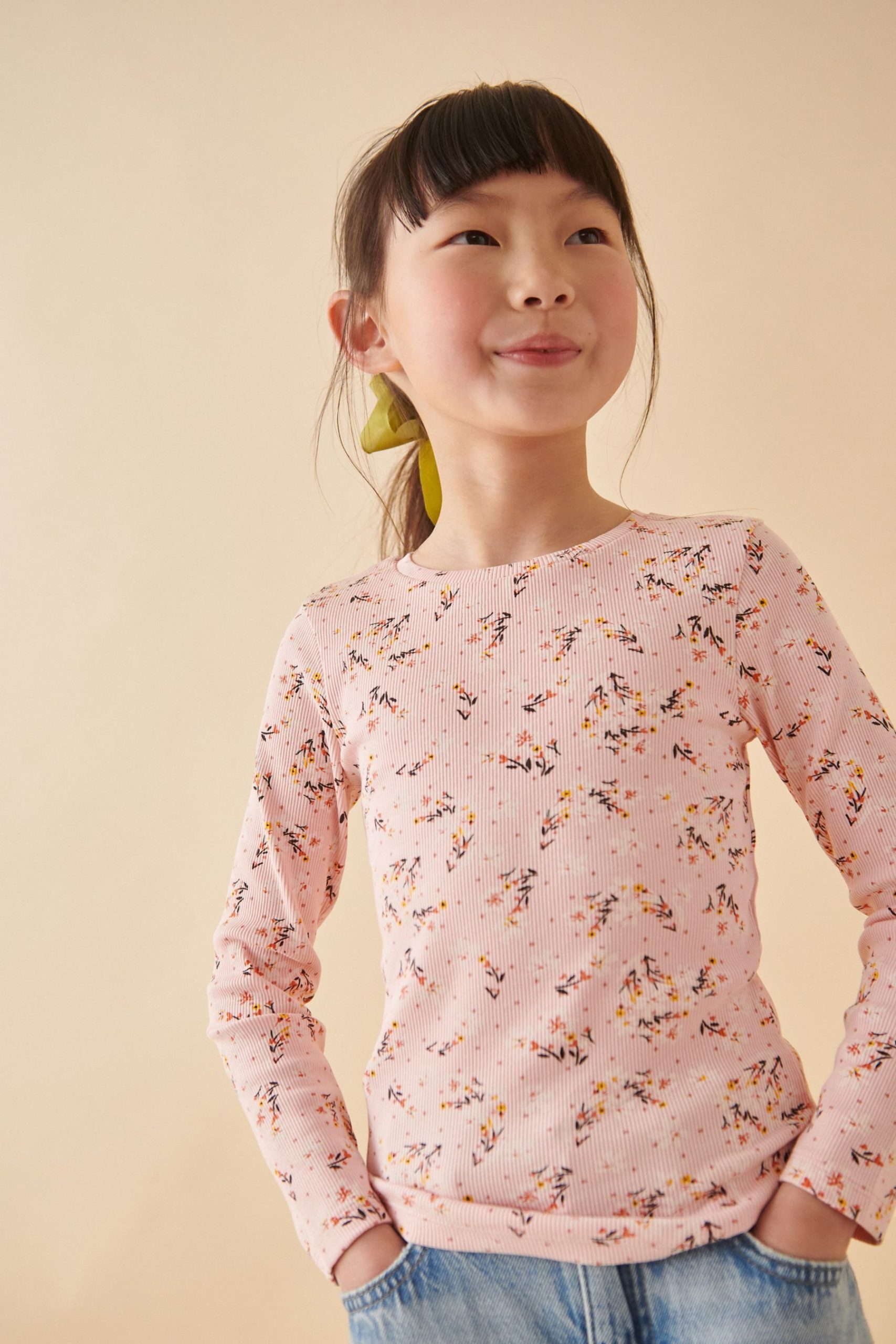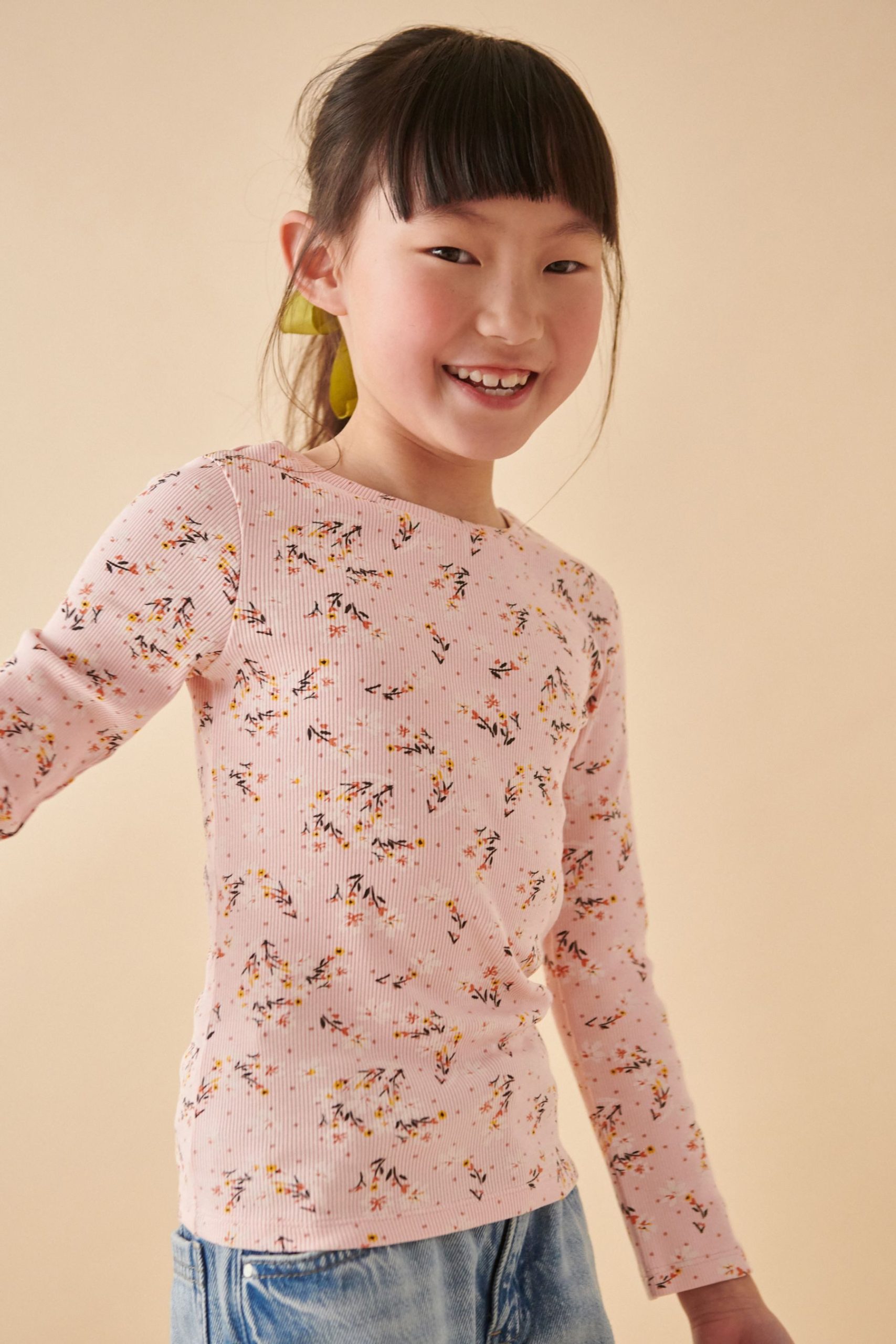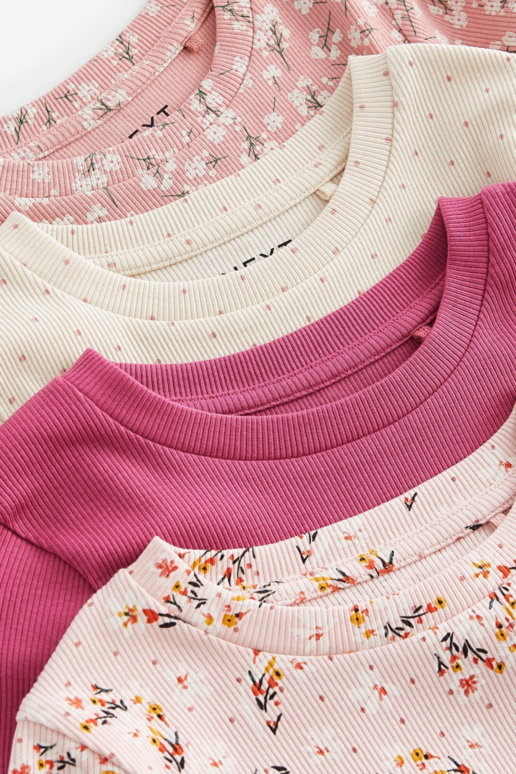 Next Langarmshirt Langärmeliges geripptes Shirt im 4er-Pack (4-tlg)