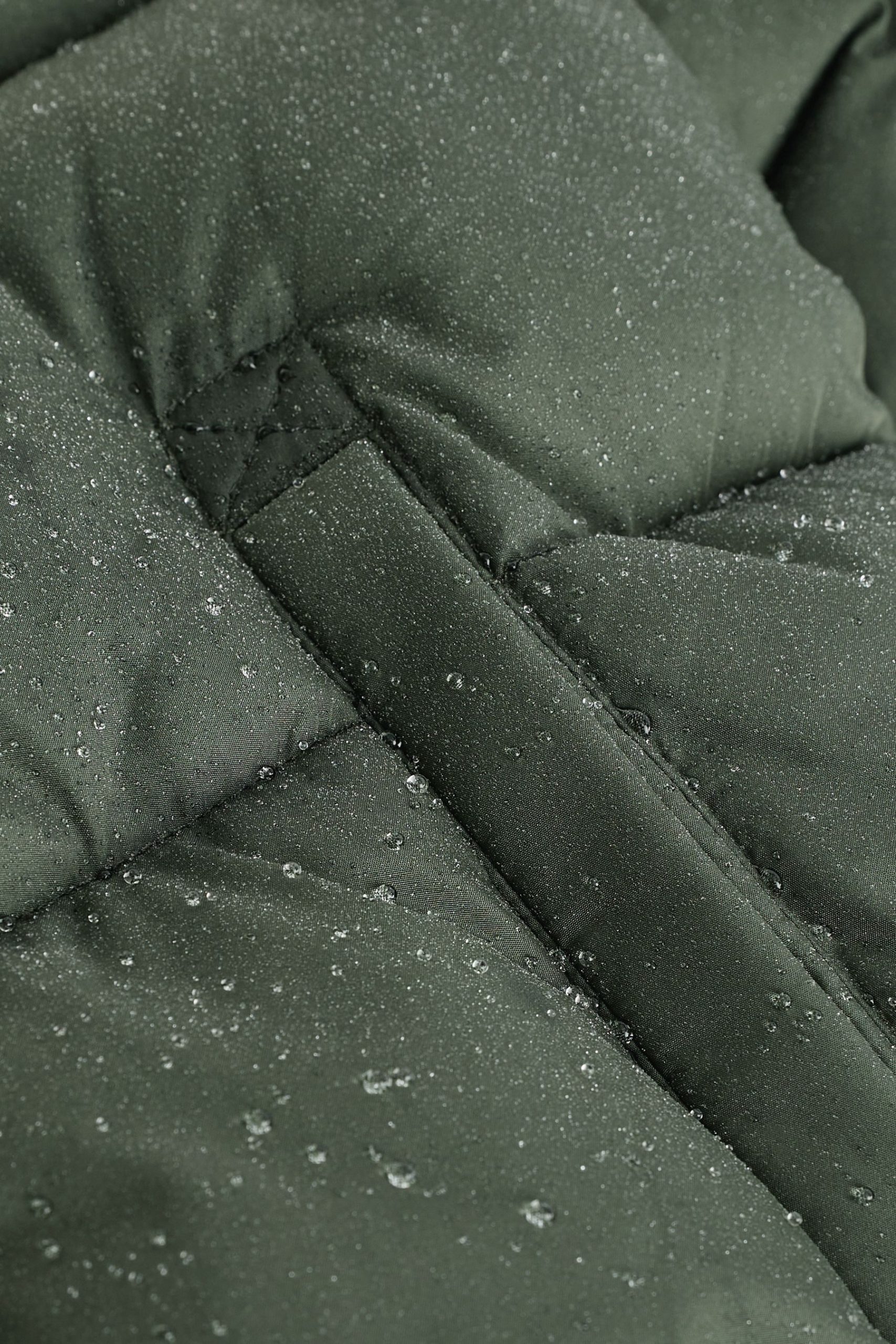 Long-length, water-resistant quilted coat from [Origin Brand – Placeholder, adapt as needed].