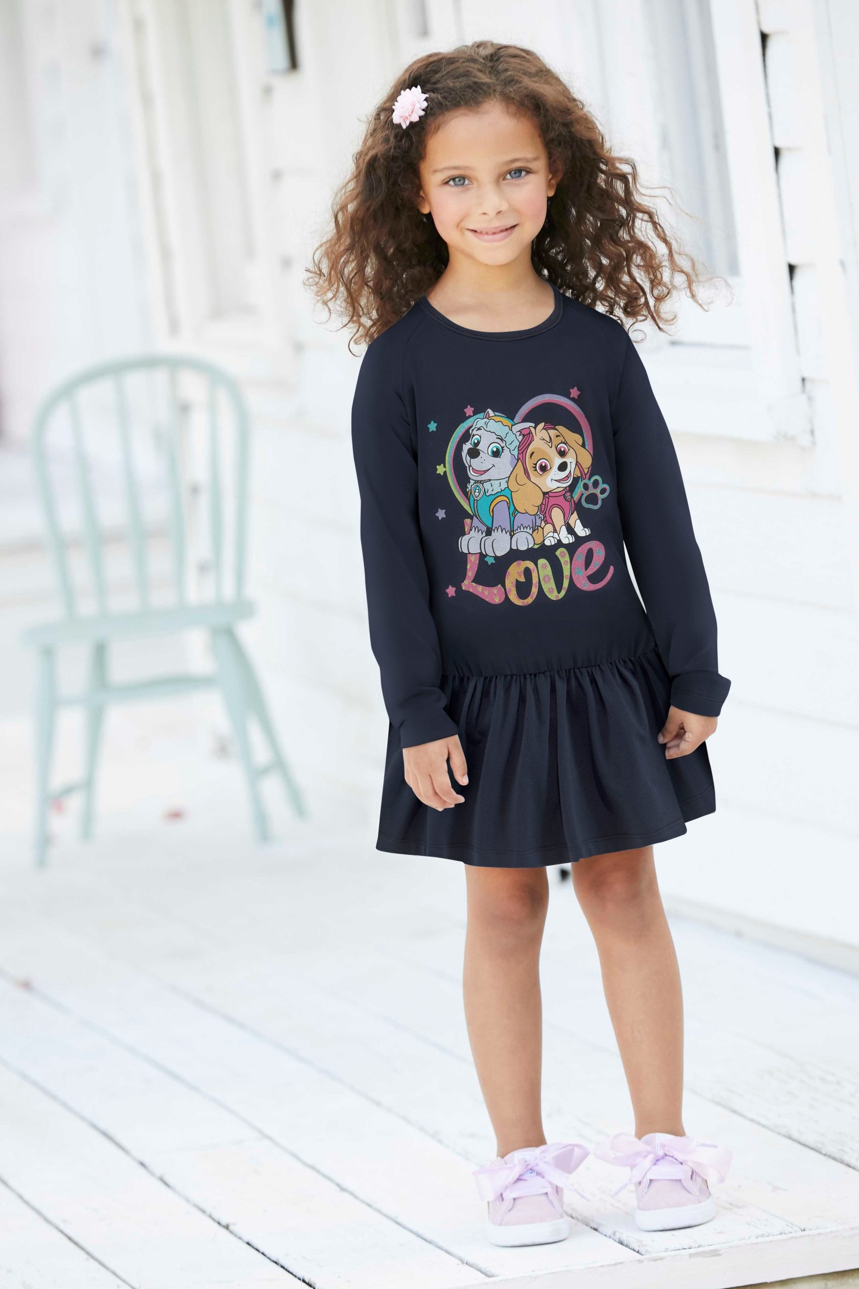 Description: Spark joy with the PAW Patrol ‚Love‘ Jersey Dress! This adorable dress features a large, glittering print of Everest and Skye, guaranteed to delight young fans. Long sleeves, a comfortable round neckline, and a flared skirt create the perfect frame for the dazzling print. Crafted from soft, stretchy jersey, this dress ensures a super-comfortable fit. Pair it with cozy leggings and sneakers for an everyday favorite look – the PAW Patrol ‚Love‘ Jersey Dress is ready for playtime adventures!