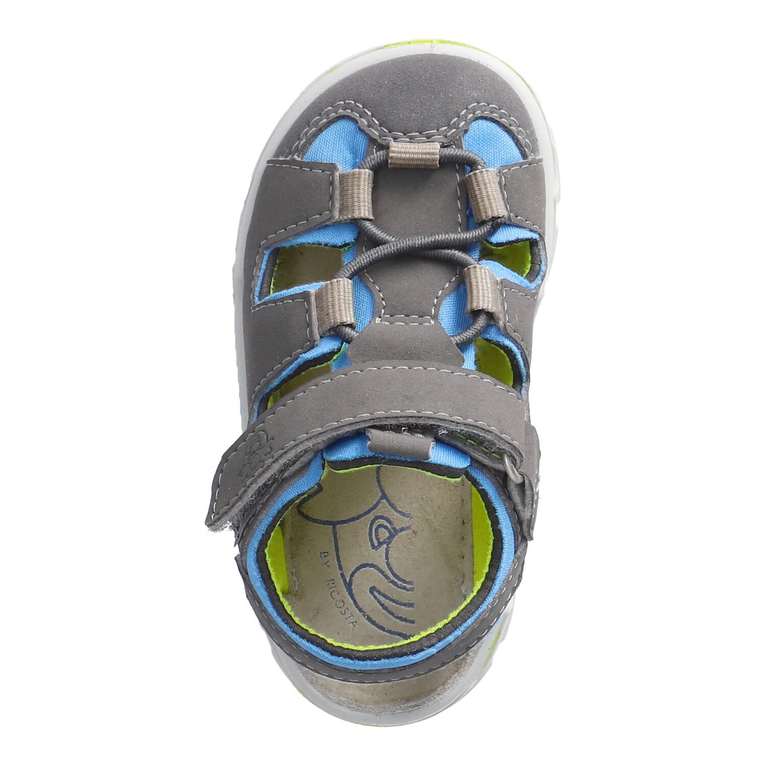 Lauflernsandale für Jungen aus dem Hause Ricosta aus einem feinen hochwertigem Synthetikmaterial. Innen ist der Schuh mit einem weichen und atmungsactiven Synthetikmaterial ausgestattet. Das Fußbett (nicht auswechselbar) ist mit Leder bezogen und sorgt für ein angenehmes Fußklima. Die Schuhform wurde nach dem WMS-Weitensystem entwickelt und hat die WMS-Weite M. Dies garantiert optimale Passform für die „kleinen“ Füße. Der Absatz ist durchgehend flach, die aus einem weichen PU-Material bestehende Laufsohle schont die Gelenke und federt jeden Tritt optimal ab. Klettverschlüsse halten den Schuh sicher am Fuß und sorgen auch für die individuelle und optimale Anpassung. Die karree-förmige Schuhform hat zwei Vorteile: Sie wirkt sportlich und bietet einen angenehmen Tragecomfort für den Fuß und die Fußzehen.