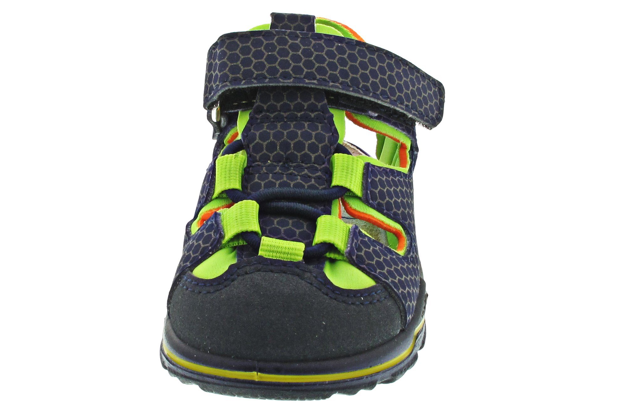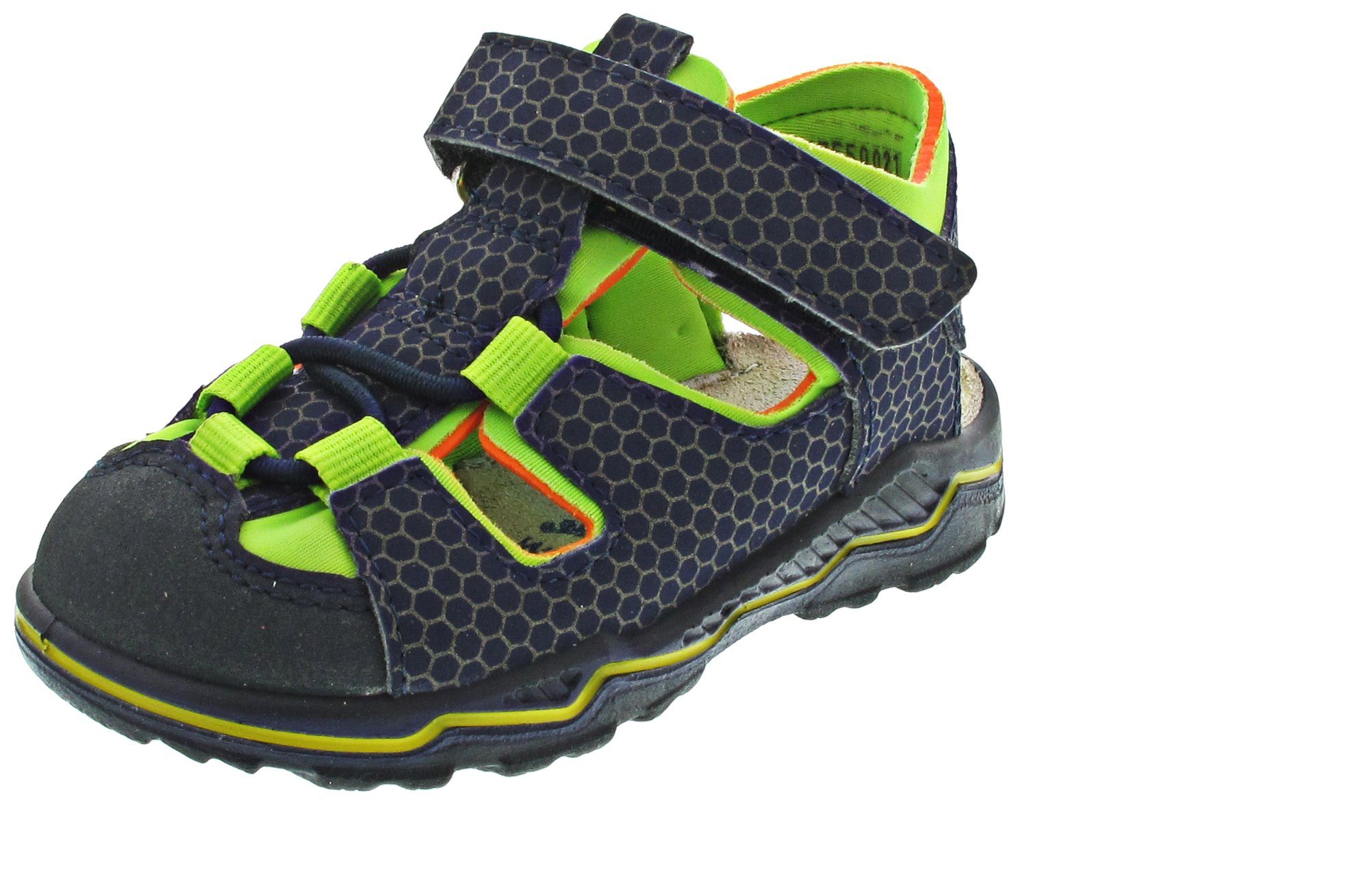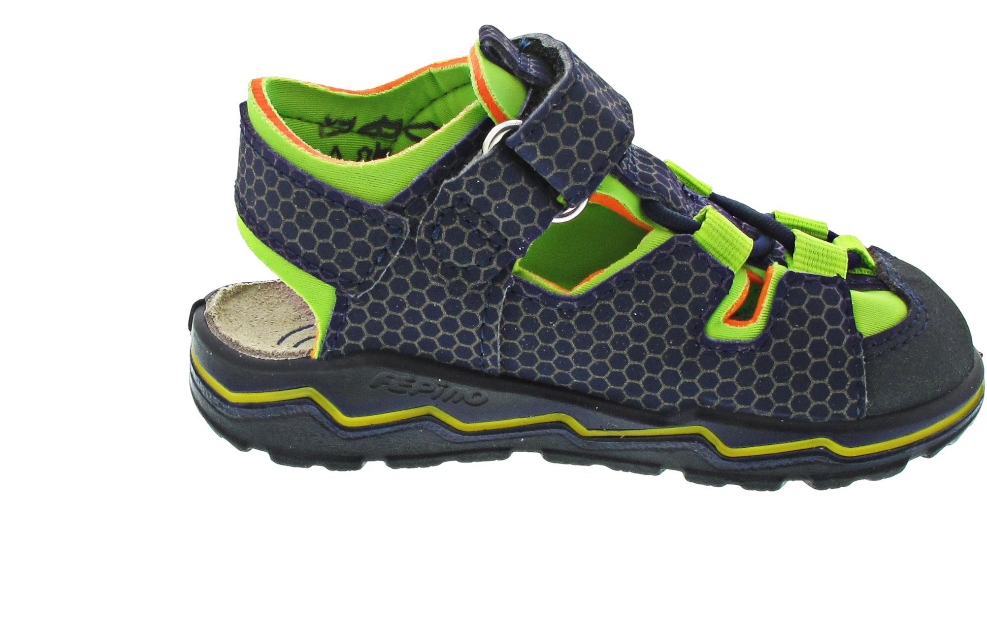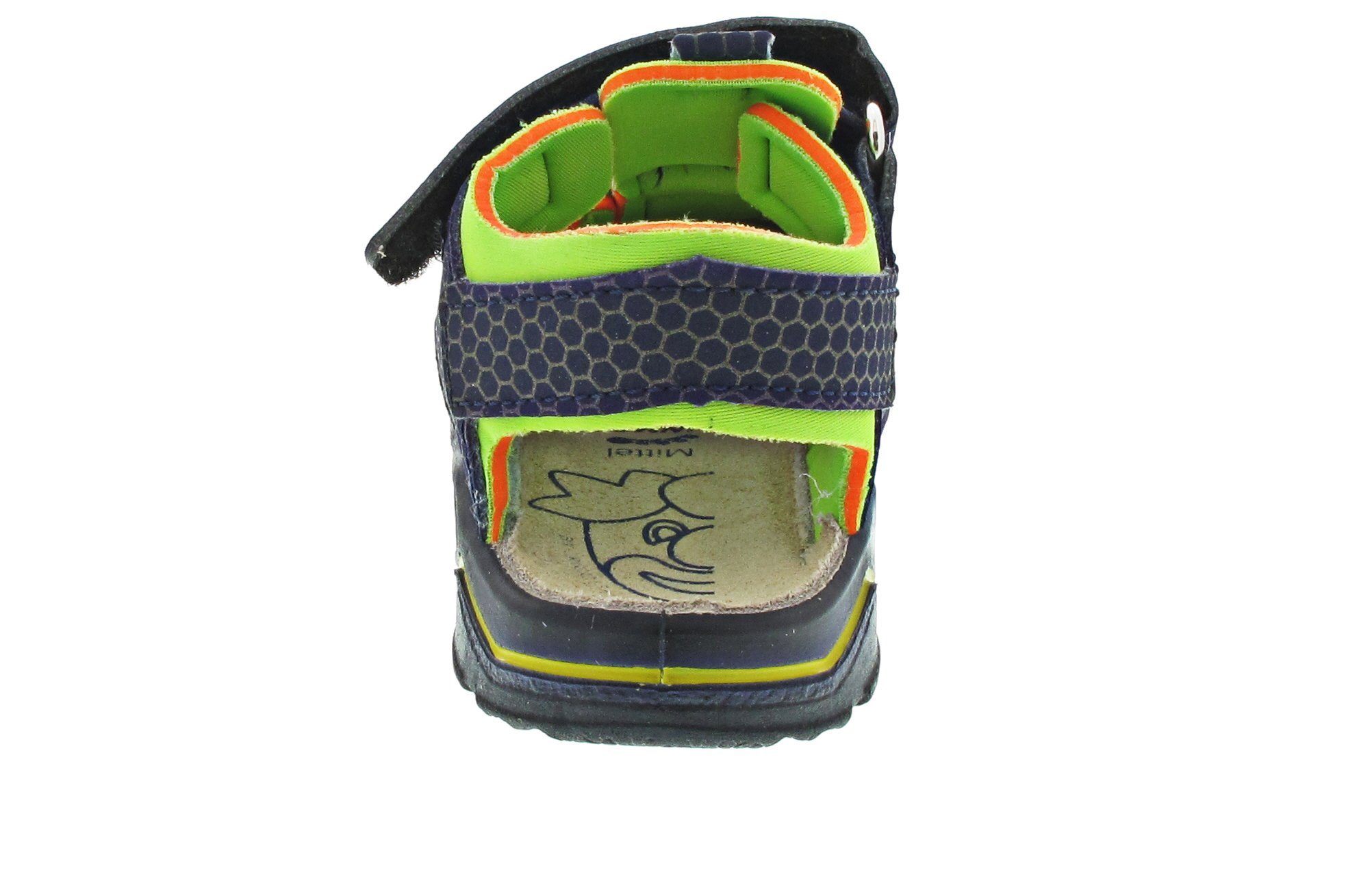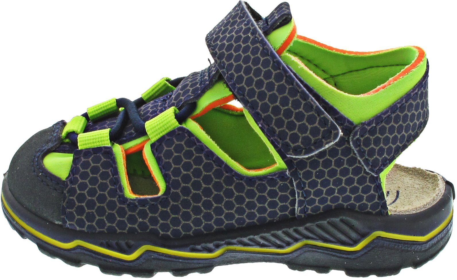 Lauflernsandale für Jungen aus dem Hause Ricosta aus einem feinen hochwertigem Synthetikmaterial. Innen ist der Schuh mit einem weichen und atmungsactiven Synthetikmaterial ausgestattet. Das Fußbett (nicht auswechselbar) ist mit Leder bezogen und sorgt für ein angenehmes Fußklima. Die Schuhform wurde nach dem WMS-Weitensystem entwickelt und hat die WMS-Weite M. Dies garantiert optimale Passform für die „kleinen“ Füße. Der Absatz ist durchgehend flach, die aus einem weichen PU-Material bestehende Laufsohle schont die Gelenke und federt jeden Tritt optimal ab. Klettverschlüsse halten den Schuh sicher am Fuß und sorgen auch für die individuelle und optimale Anpassung. Die karree-förmige Schuhform hat zwei Vorteile: Sie wirkt sportlich und bietet einen angenehmen Tragecomfort für den Fuß und die Fußzehen.