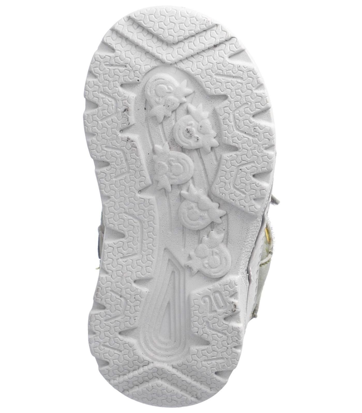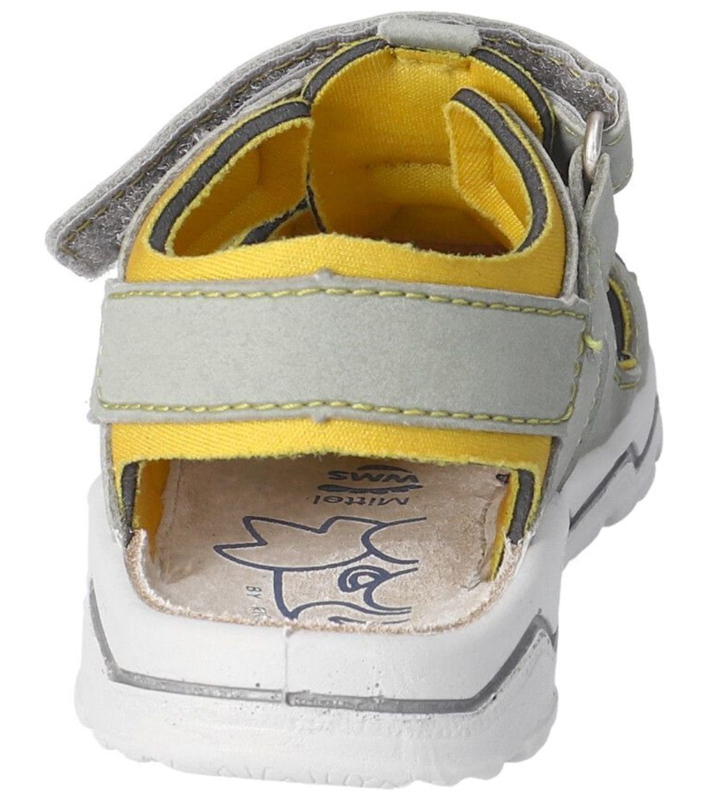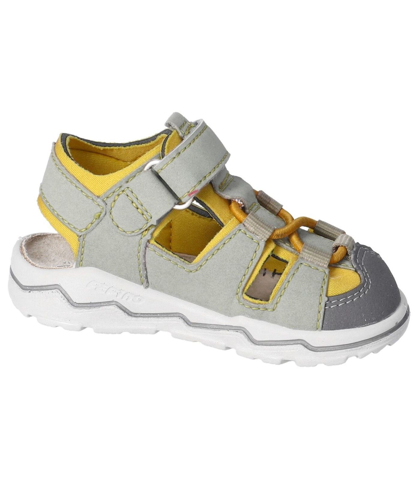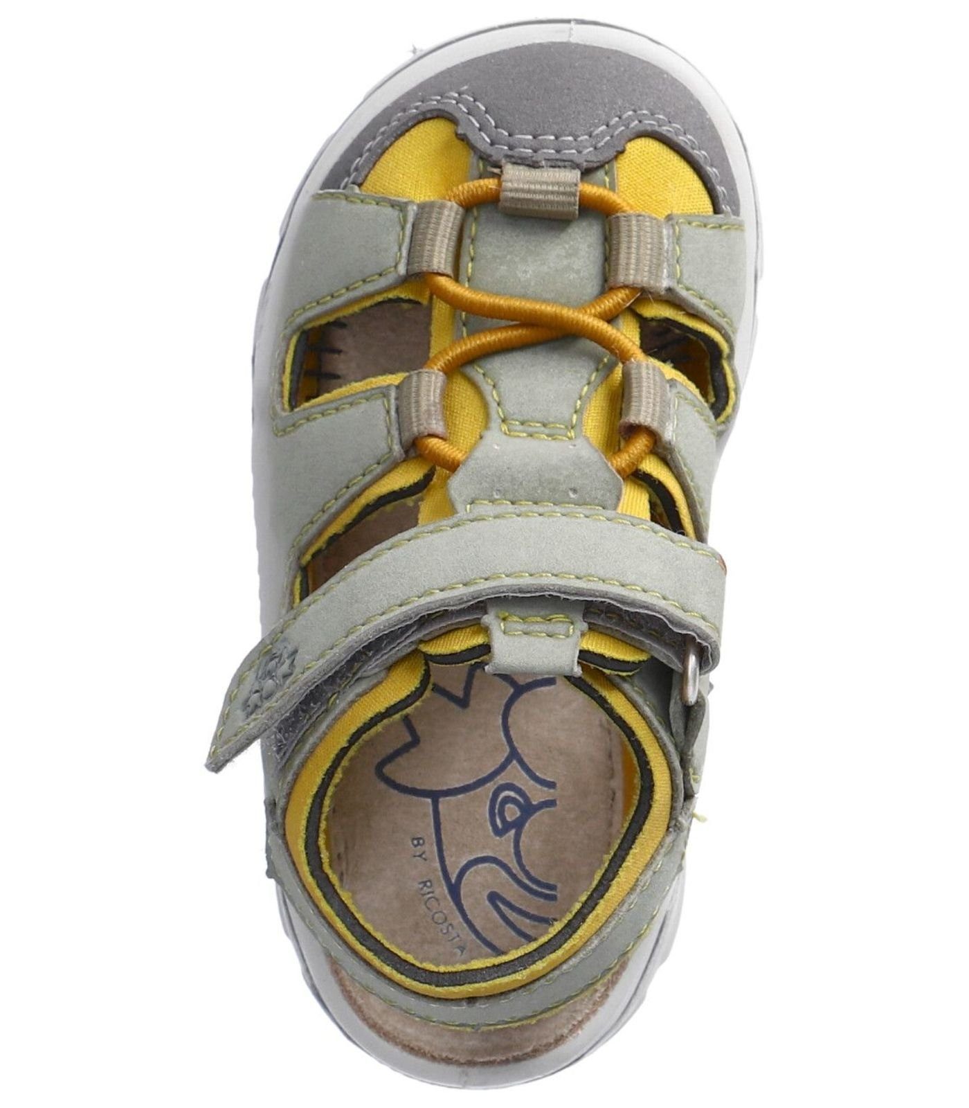 Lauflernsandale für Jungen aus dem Hause Ricosta aus einem feinen hochwertigem Synthetikmaterial. Innen ist der Schuh mit einem weichen und atmungsactiven Synthetikmaterial ausgestattet. Das Fußbett (nicht auswechselbar) ist mit Leder bezogen und sorgt für ein angenehmes Fußklima. Die Schuhform wurde nach dem WMS-Weitensystem entwickelt und hat die WMS-Weite M. Dies garantiert optimale Passform für die „kleinen“ Füße. Der Absatz ist durchgehend flach, die aus einem weichen PU-Material bestehende Laufsohle schont die Gelenke und federt jeden Tritt optimal ab. Klettverschlüsse halten den Schuh sicher am Fuß und sorgen auch für die individuelle und optimale Anpassung. Die karree-förmige Schuhform hat zwei Vorteile: Sie wirkt sportlich und bietet einen angenehmen Tragecomfort für den Fuß und die Fußzehen.