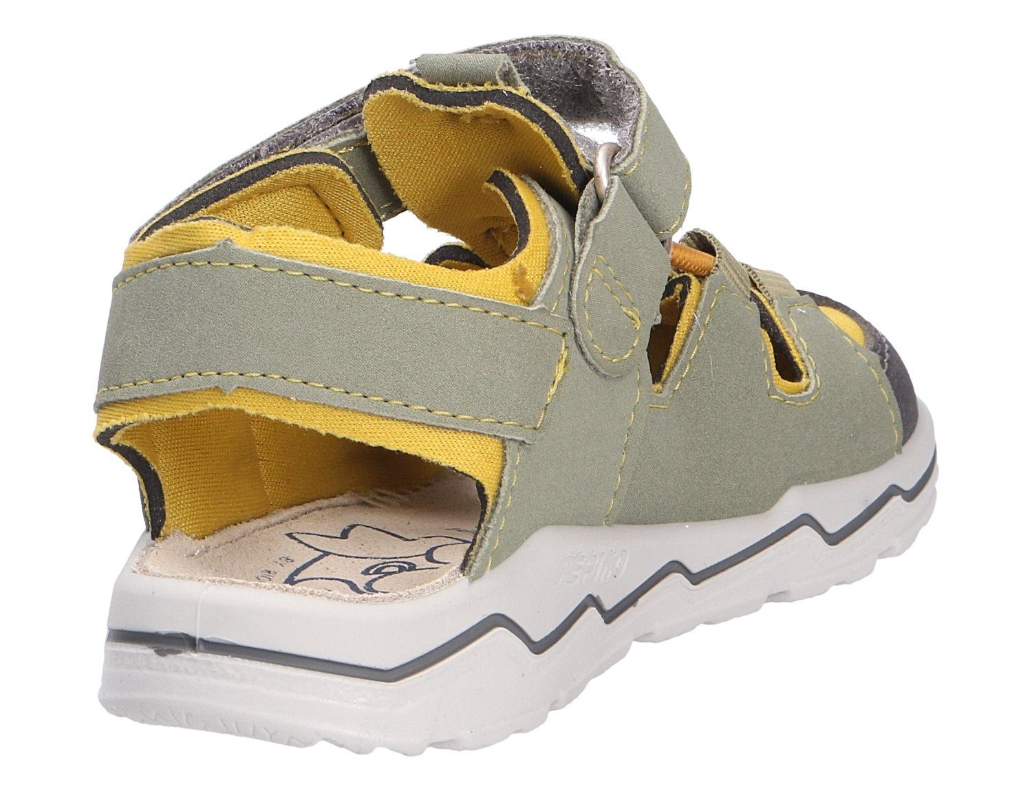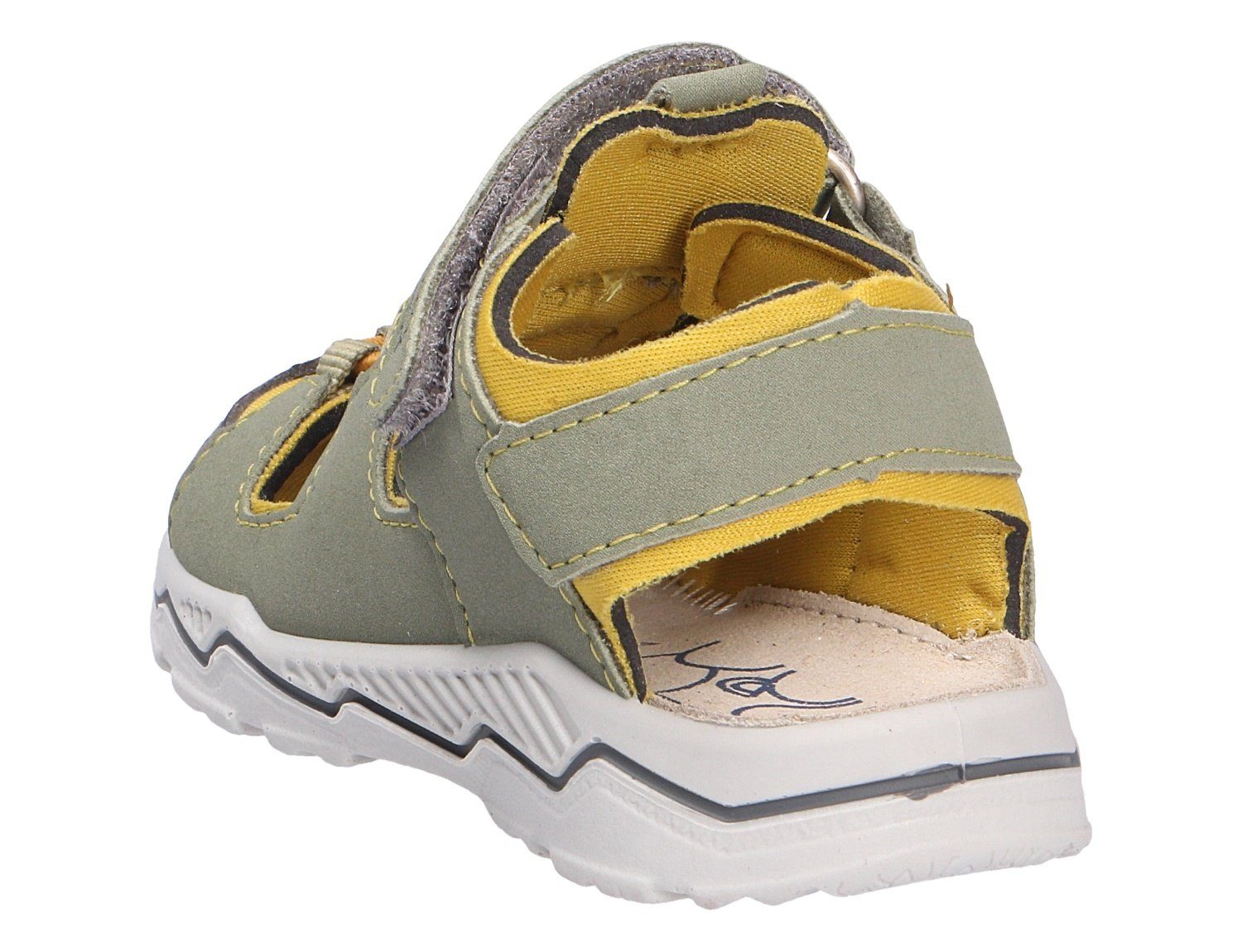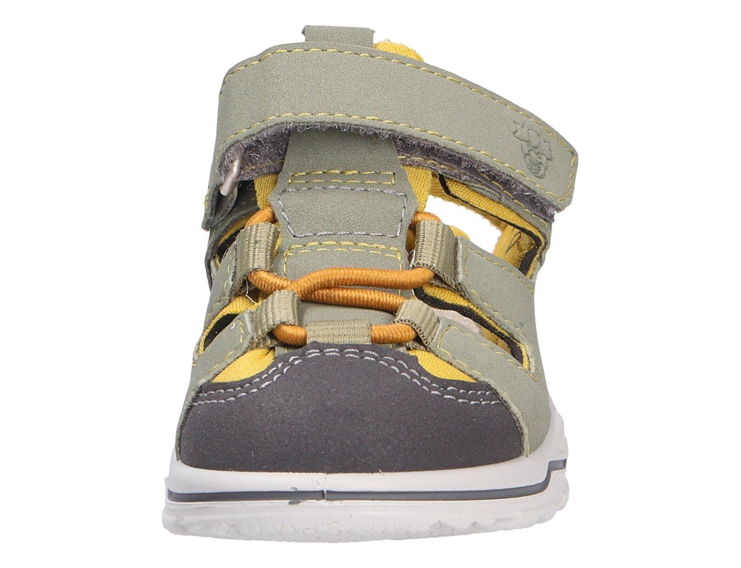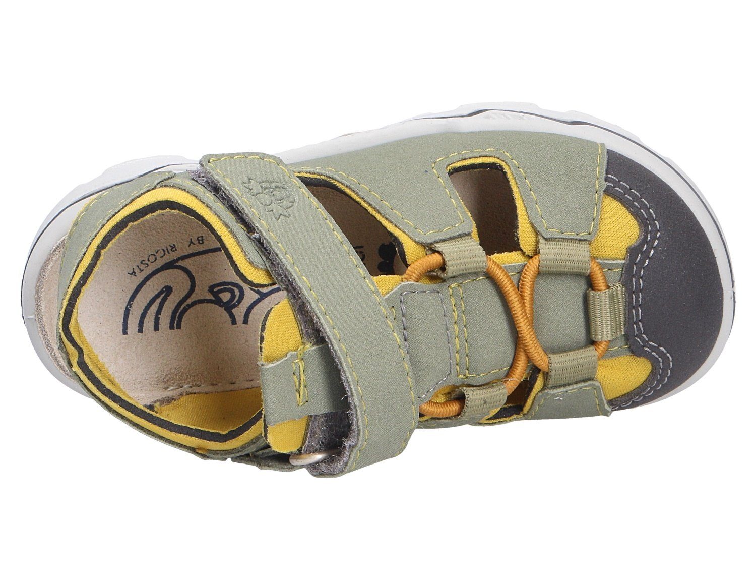 Lauflernsandale für Jungen aus dem Hause Ricosta aus einem feinen hochwertigem Synthetikmaterial. Innen ist der Schuh mit einem weichen und atmungsactiven Synthetikmaterial ausgestattet. Das Fußbett (nicht auswechselbar) ist mit Leder bezogen und sorgt für ein angenehmes Fußklima. Die Schuhform wurde nach dem WMS-Weitensystem entwickelt und hat die WMS-Weite M. Dies garantiert optimale Passform für die „kleinen“ Füße. Der Absatz ist durchgehend flach, die aus einem weichen PU-Material bestehende Laufsohle schont die Gelenke und federt jeden Tritt optimal ab. Klettverschlüsse halten den Schuh sicher am Fuß und sorgen auch für die individuelle und optimale Anpassung. Die karree-förmige Schuhform hat zwei Vorteile: Sie wirkt sportlich und bietet einen angenehmen Tragecomfort für den Fuß und die Fußzehen.