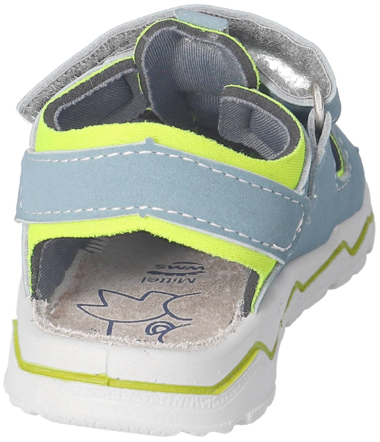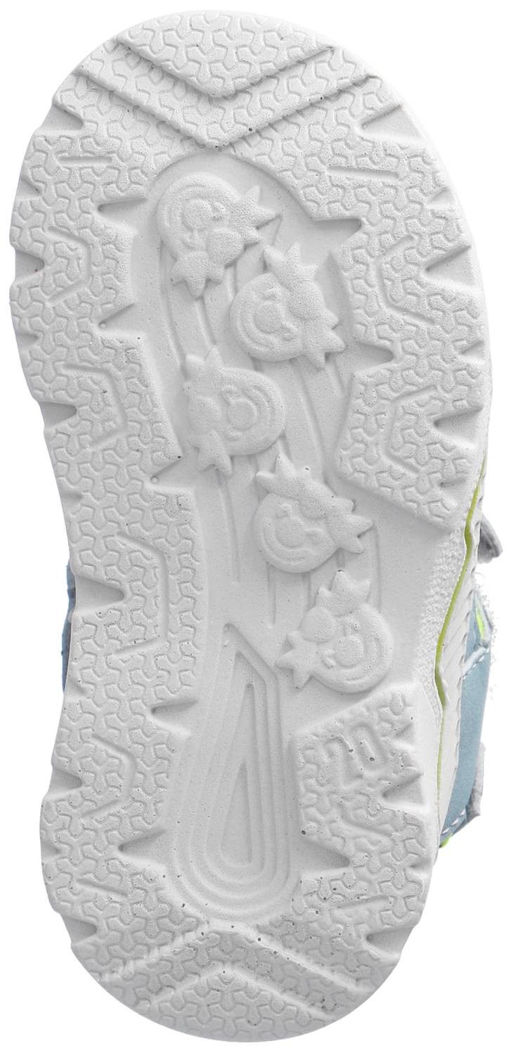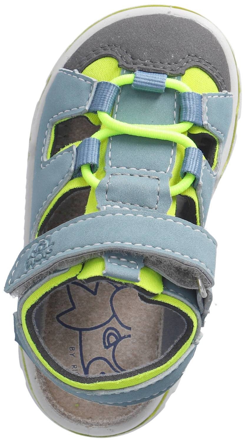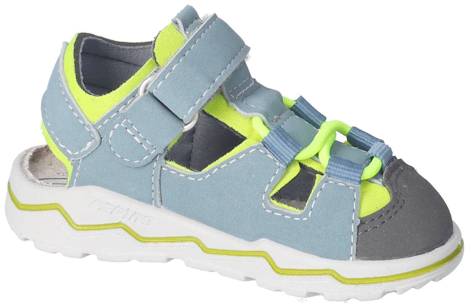 Lauflernsandale für Jungen aus dem Hause Ricosta aus einem feinen hochwertigem Synthetikmaterial. Innen ist der Schuh mit einem weichen und atmungsactiven Synthetikmaterial ausgestattet. Das Fußbett (nicht auswechselbar) ist mit Leder bezogen und sorgt für ein angenehmes Fußklima. Die Schuhform wurde nach dem WMS-Weitensystem entwickelt und hat die WMS-Weite M. Dies garantiert optimale Passform für die „kleinen“ Füße. Der Absatz ist durchgehend flach, die aus einem weichen PU-Material bestehende Laufsohle schont die Gelenke und federt jeden Tritt optimal ab. Klettverschlüsse halten den Schuh sicher am Fuß und sorgen auch für die individuelle und optimale Anpassung. Die karree-förmige Schuhform hat zwei Vorteile: Sie wirkt sportlich und bietet einen angenehmen Tragecomfort für den Fuß und die Fußzehen.