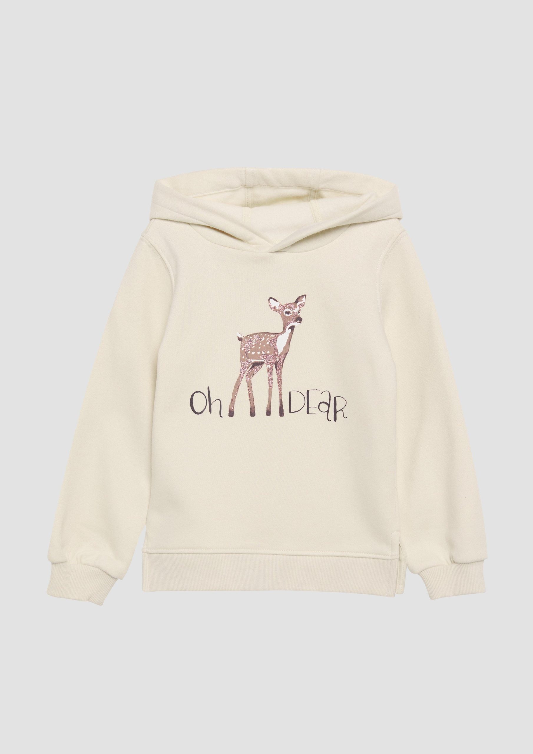 Wrap your little one in cozy style with this s.Oliver hooded sweatshirt! Featuring a playful glitter print and a soft, brushed interior, this sweatshirt is perfect for cooler days and comfortable lounging. The relaxed fit allows for unrestricted movement during playtime, while its durable construction ensures it will be a wardrobe favorite. Pair it with jeans or leggings for a casually chic look. Ideal for autumn strolls and snug evenings at home. Crafted with quality and designed for comfort.