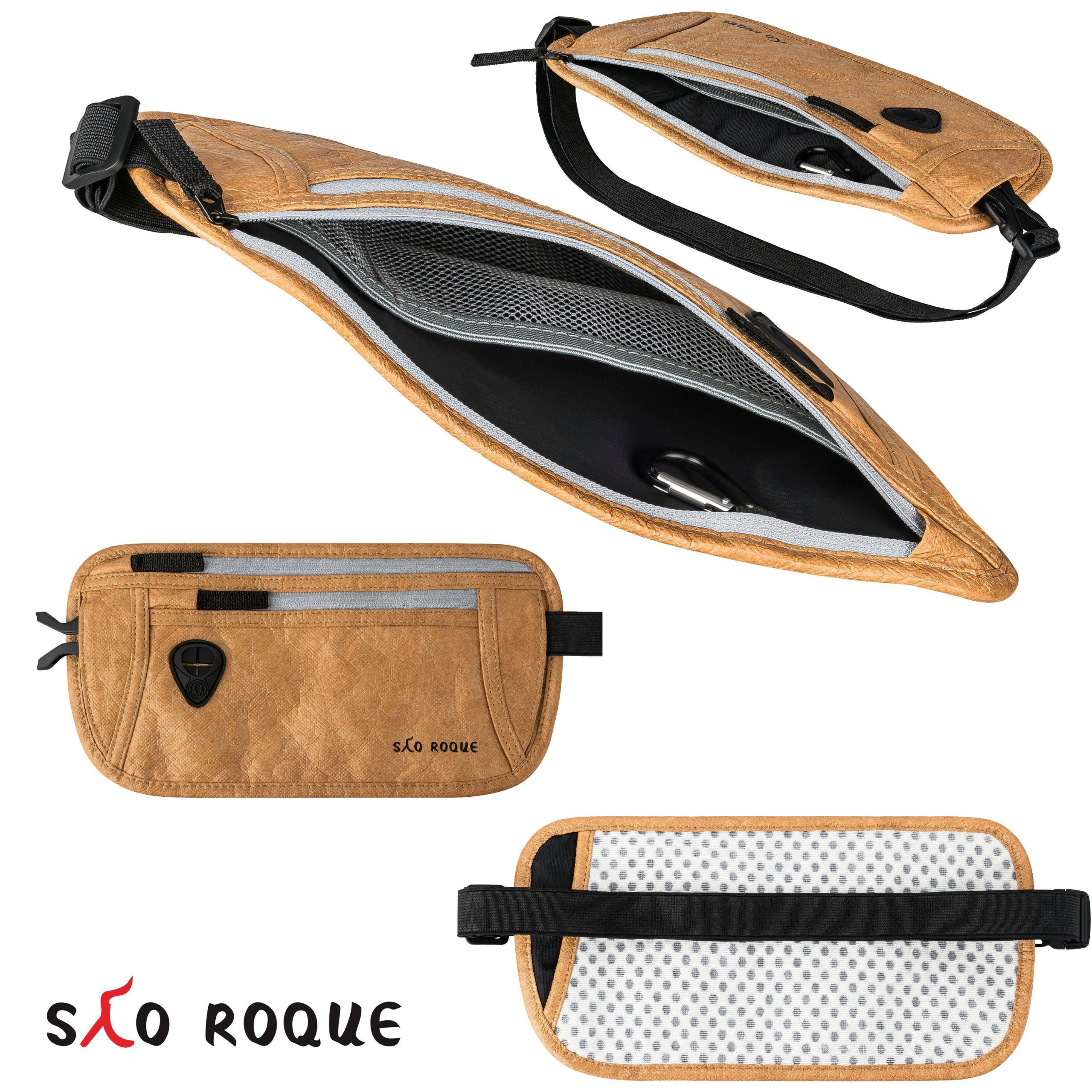 SAO ROQUE flache Bauchtasche: Diebstahlssicher, komfortabel und vielseitig für Damen und Herren. RFID-Schutz und verstellbarer Gürtel für optimalen Komfort und Sicherheit.