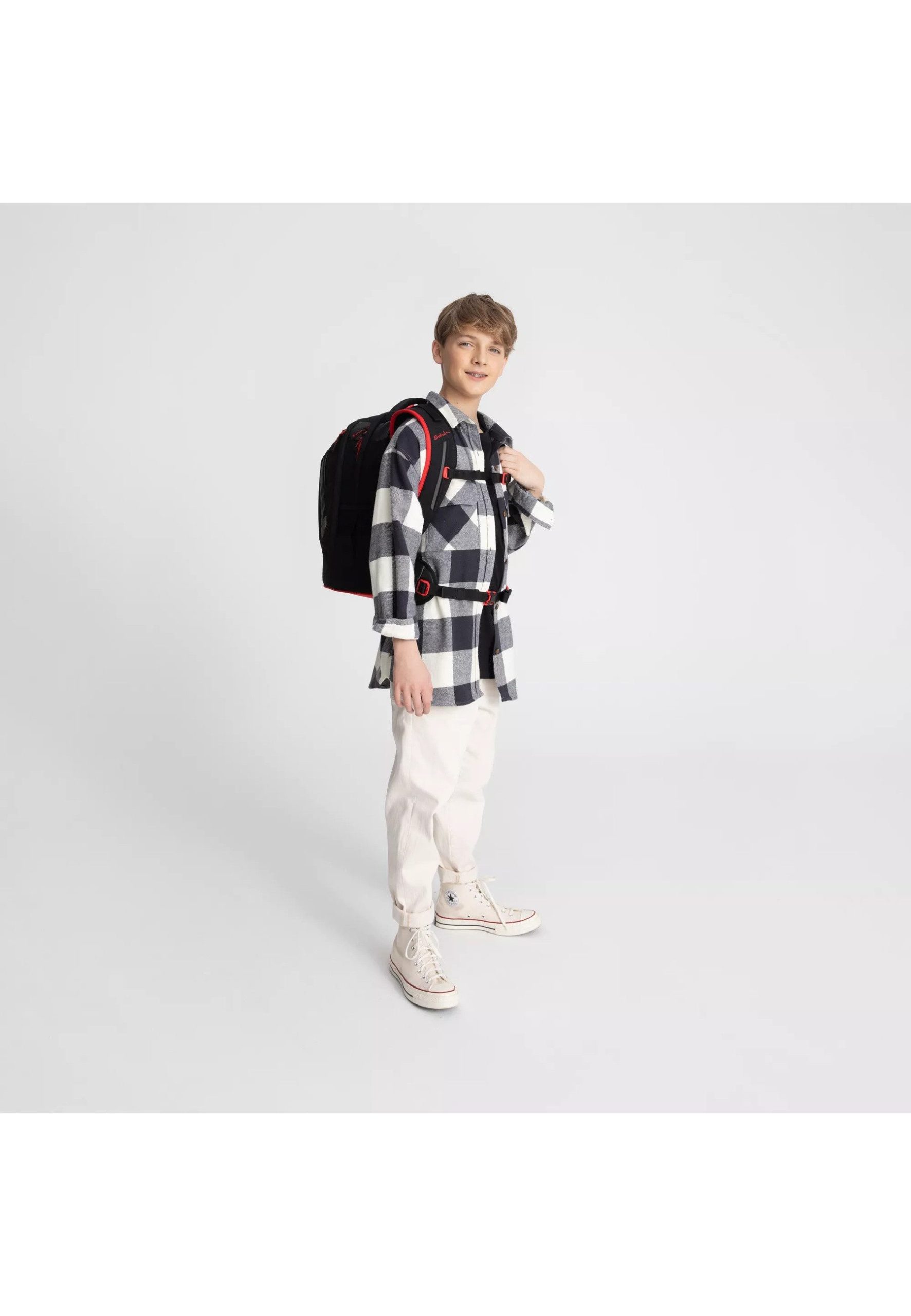 Are you ready to swap? Der satch pack ist nicht nur ein wahres Organisationstalent, sondern dank der austauschbaren SWAPS auch ein absoluter Hingucker! Werde selbst zum Designer und gestalte dir deinen satch pack, wie er dir gefällt! Der ergonomische Rucksack mit Reflektoren kann auf alle Körpergrößen von 1,40 bis 1,80 m angepasst werden. In zwei Hauptfächern und einem Organizerfach finden alle deine Schulsachen ordentlich Platz. Die dehnbaren Außentaschen bieten Raum für eine Trinkflasche oder einen Regenschirm. Das Highlight des standfesten Rucksackes sind die austauschbaren SWAPS auf der Front.